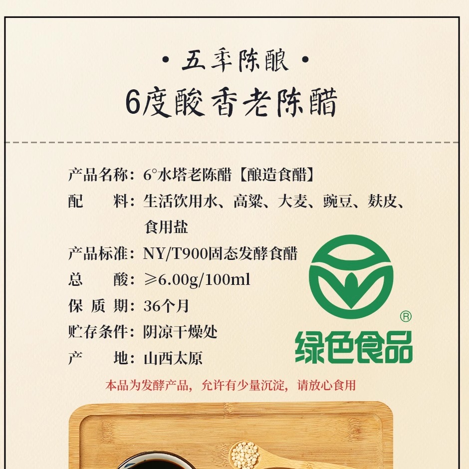 📚 绿色食品水塔老陈醋五年6度420ml无添加饺子醋家用0添加