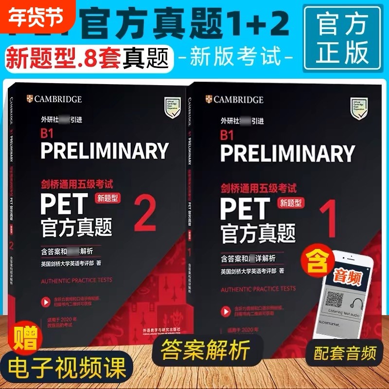 📚 外研社剑桥PET新题型通用五级考试PET青少版剑桥PET官方真题1+2全套试题集综合课程B1备考英语五级历年真题教材资料书英语模拟题