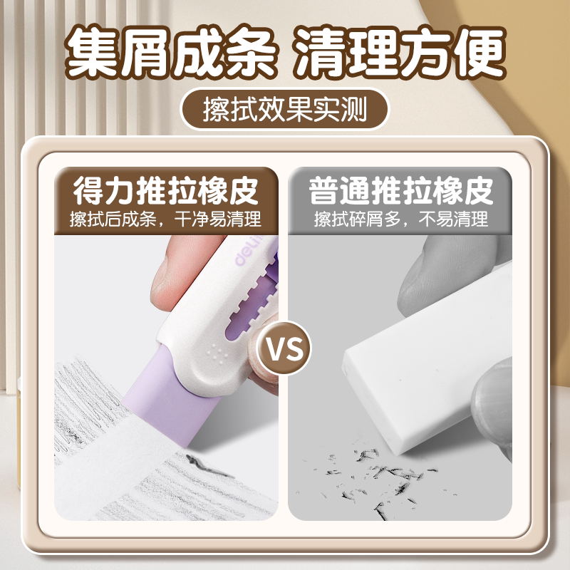 📚 得力推拉橡皮擦小学生专用像皮擦不留痕无屑超干净擦字成线橡皮儿童安全无毒幼儿园推动式铅笔象皮擦文具用品