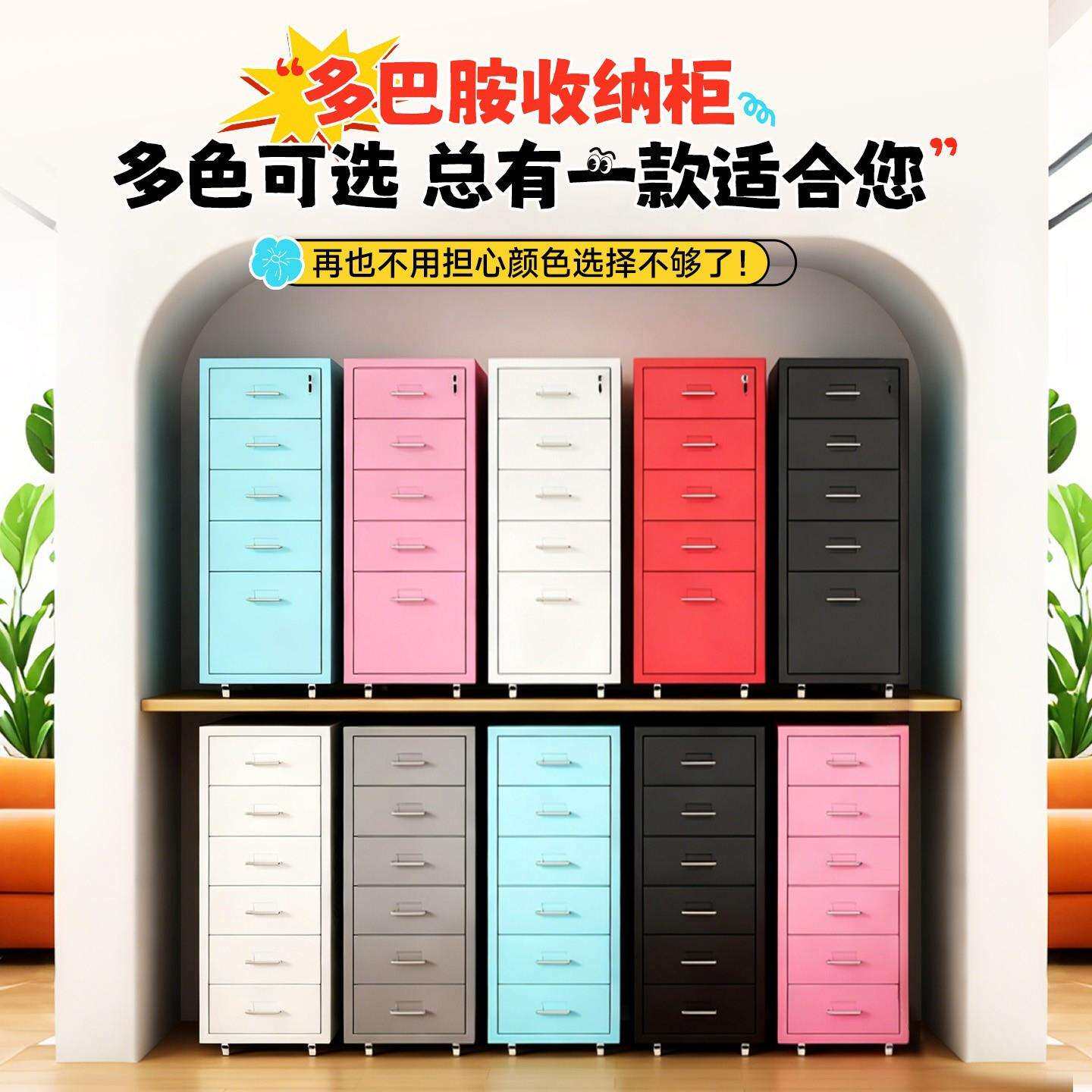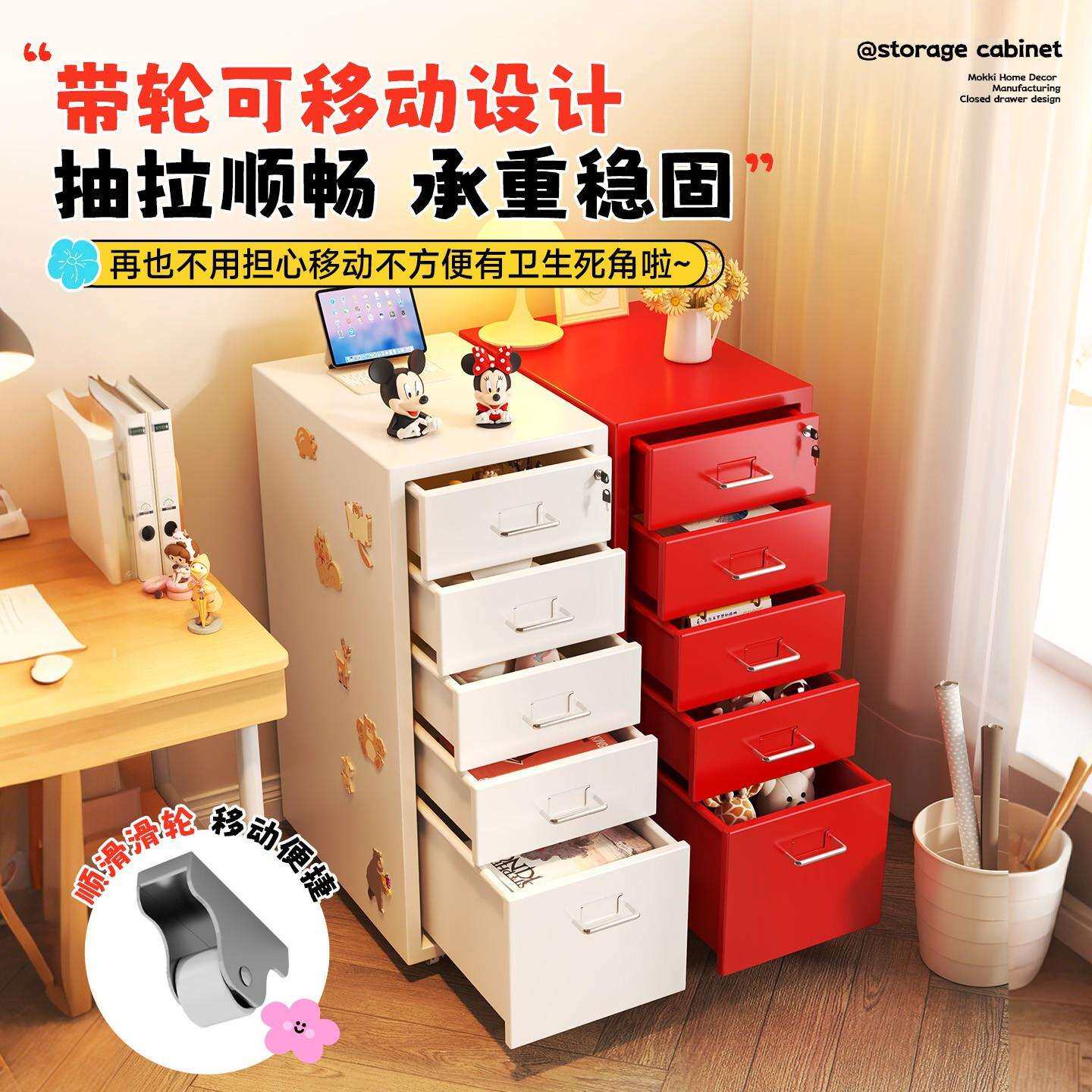 📚 钢制抽屉式收纳柜办公室带轮可移动文件柜拆装多层斗柜家用叠衣柜