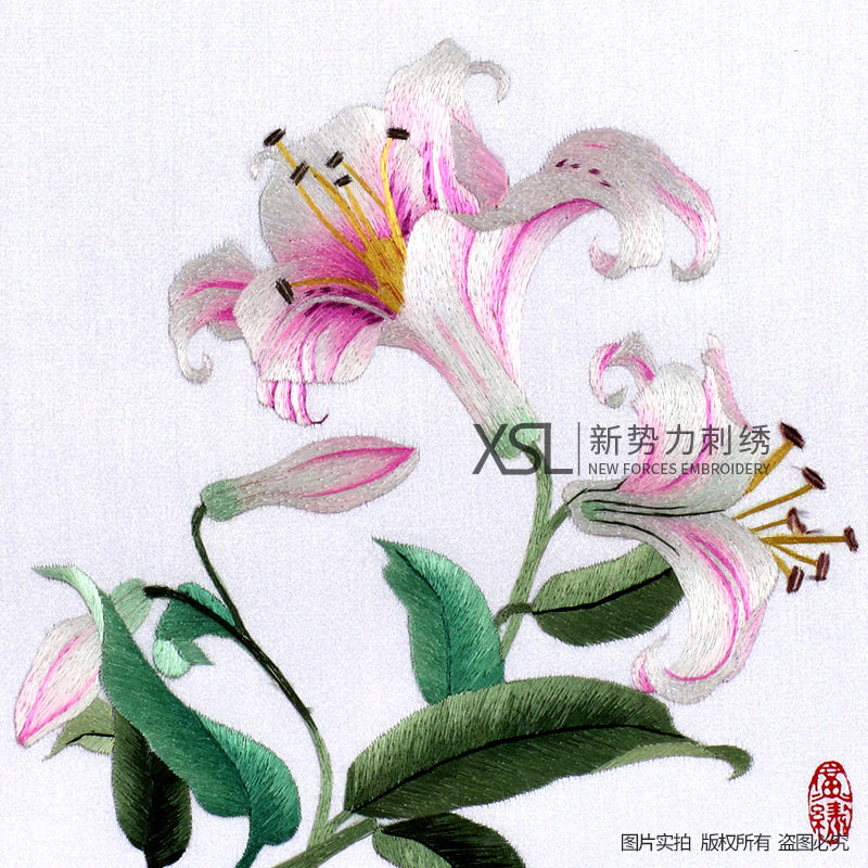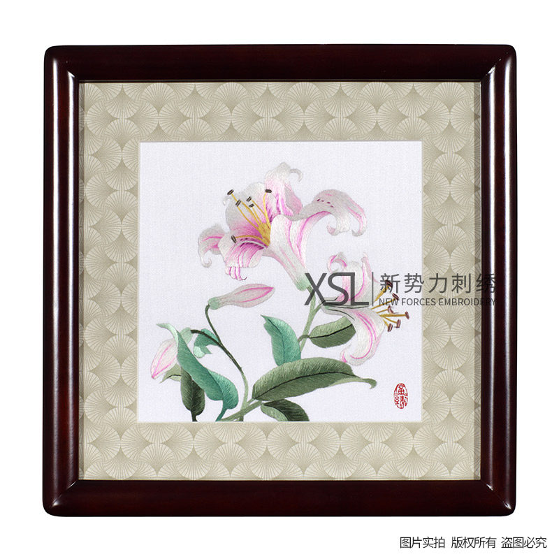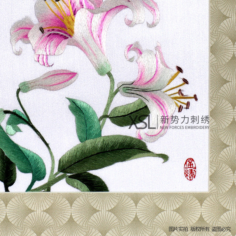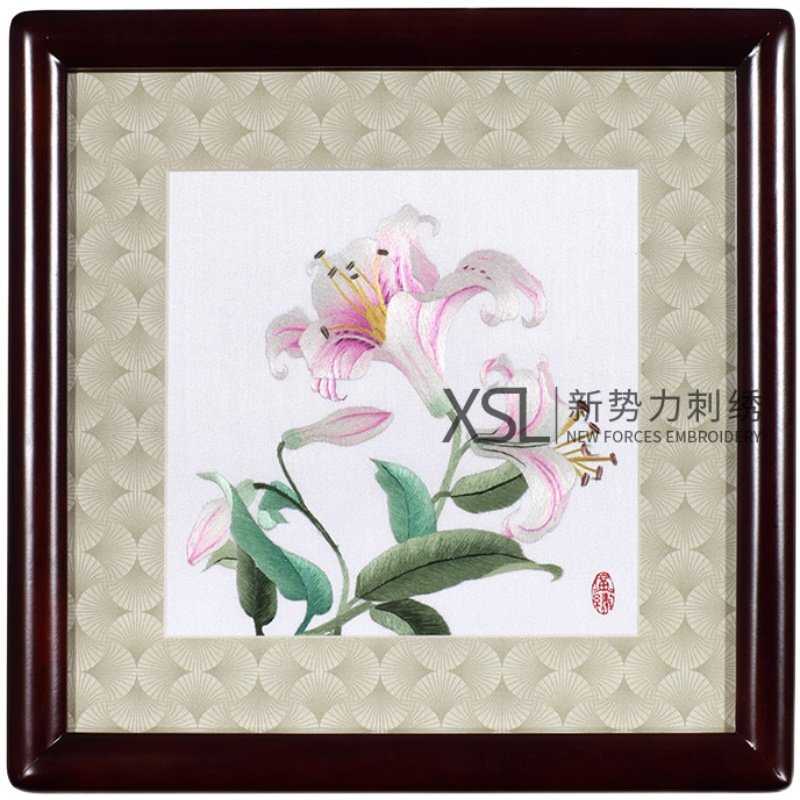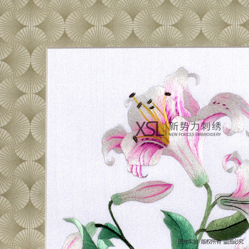 📚 厂价直销粤绣广绣纯手工刺绣百合广州特色新房装饰挂件摆件中式