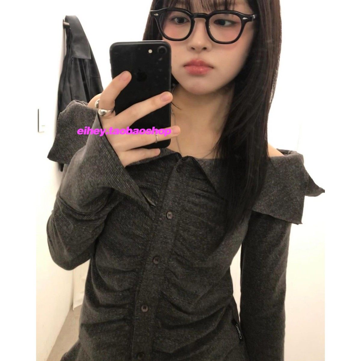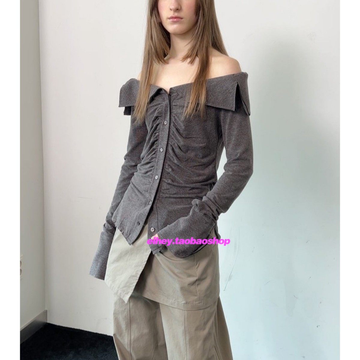 📚 eihey诶嘿柳智敏同款露肩褶皱上衣波浪边修身性感内搭打底衫上衣