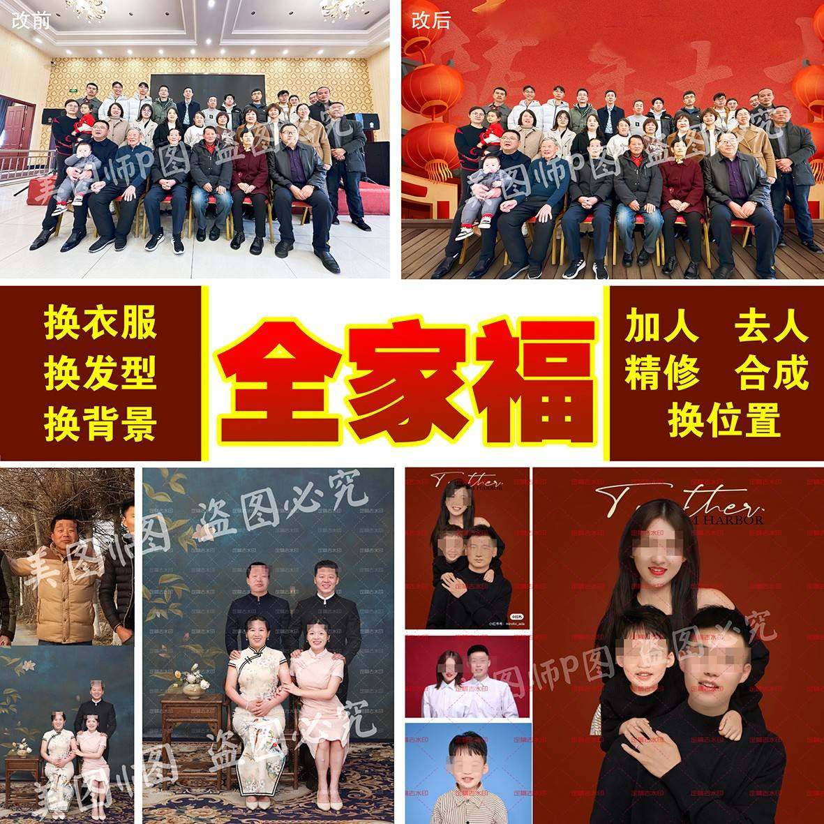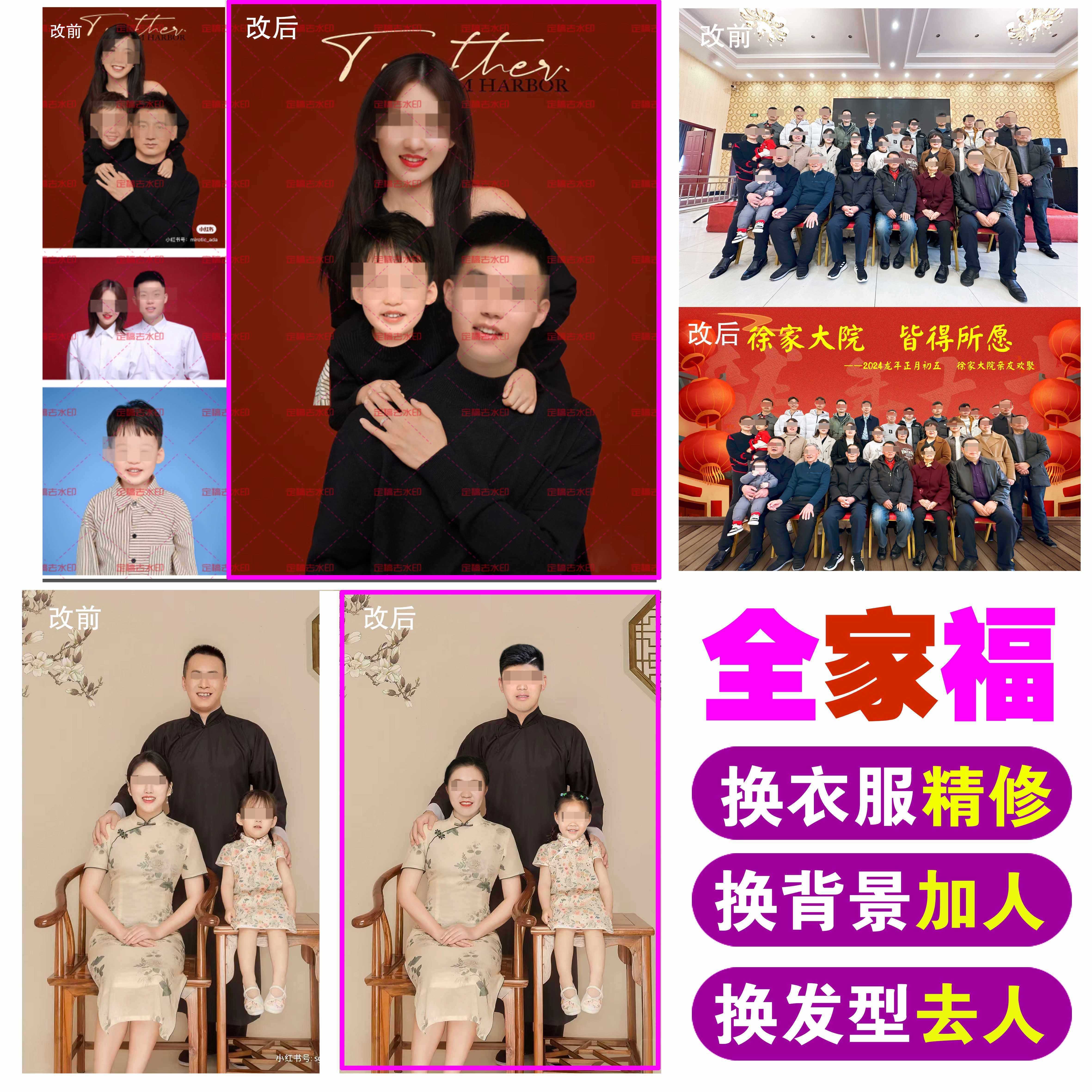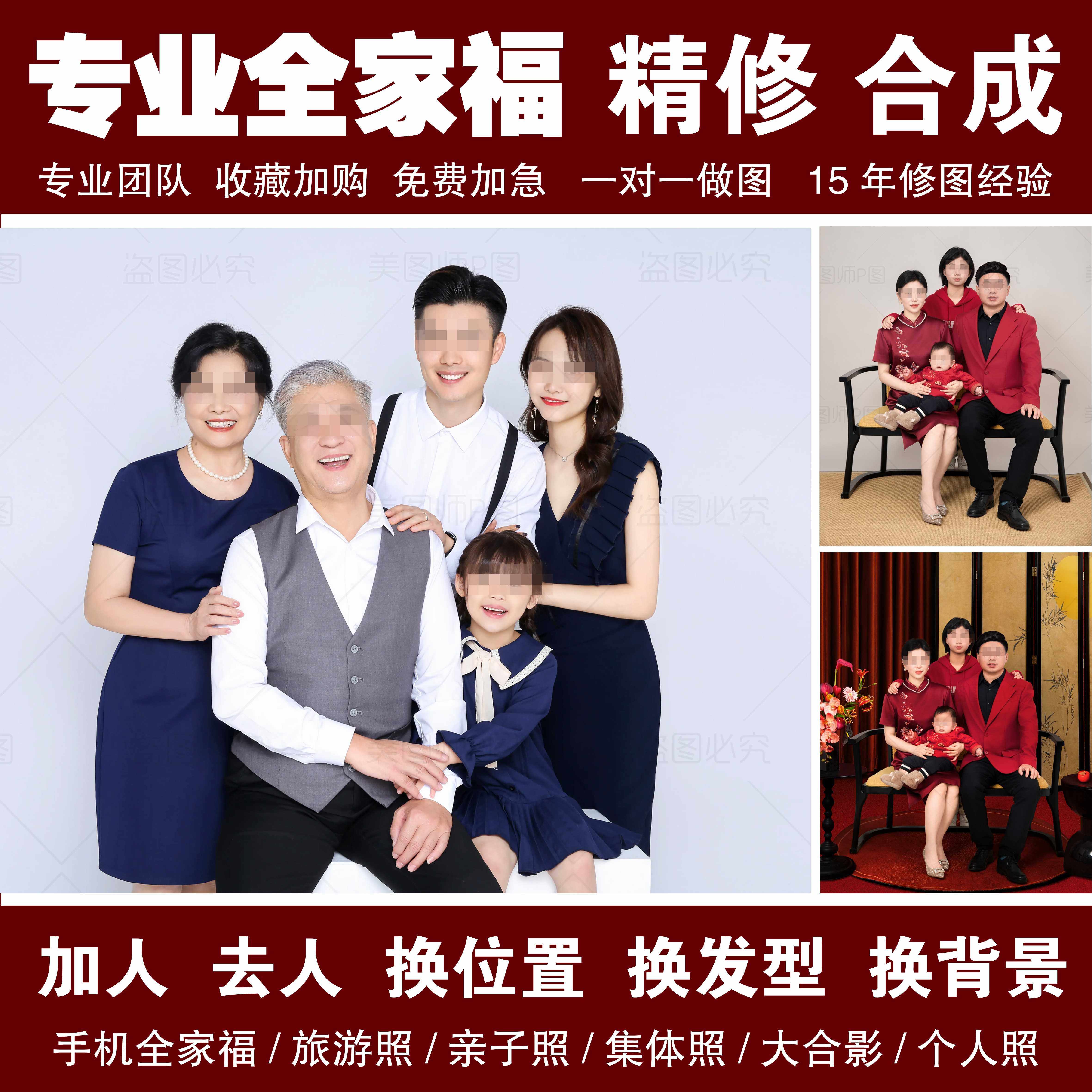 📚 专业全家福修图合照加人ps精修人像模板合成P照片换背景