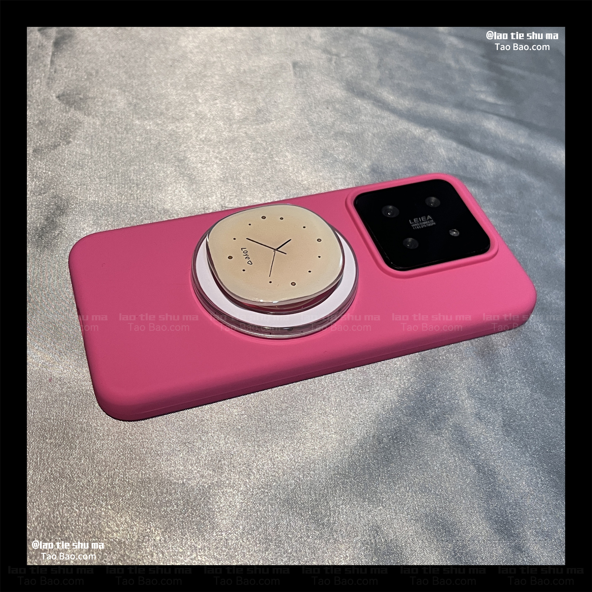 📚 火龙果色液态硅胶时钟磁吸支架适用Realme真我GT8/GT7PRO竞速版手机壳Neo7防摔6se软糯GT5PRO新款创意甜酷女