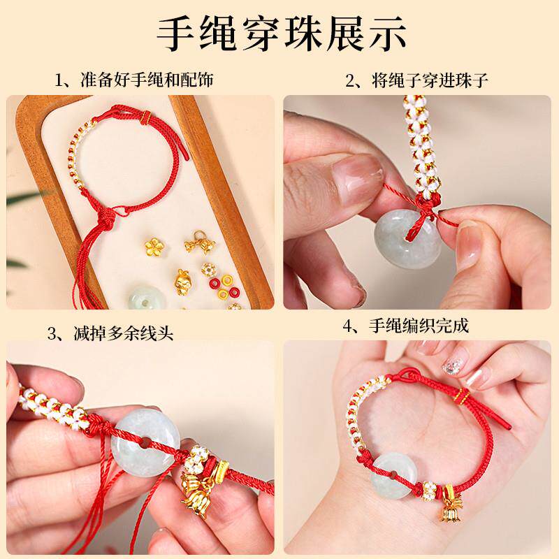 📚 领花平安扣半成品手绳手工编织绳转运珠编绳手链男女款手环可穿珠