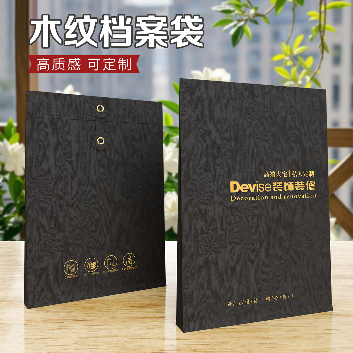 📚 木纹纸档案袋A4文件资料袋牛皮纸公文袋装修公司黑卡红卡合同袋