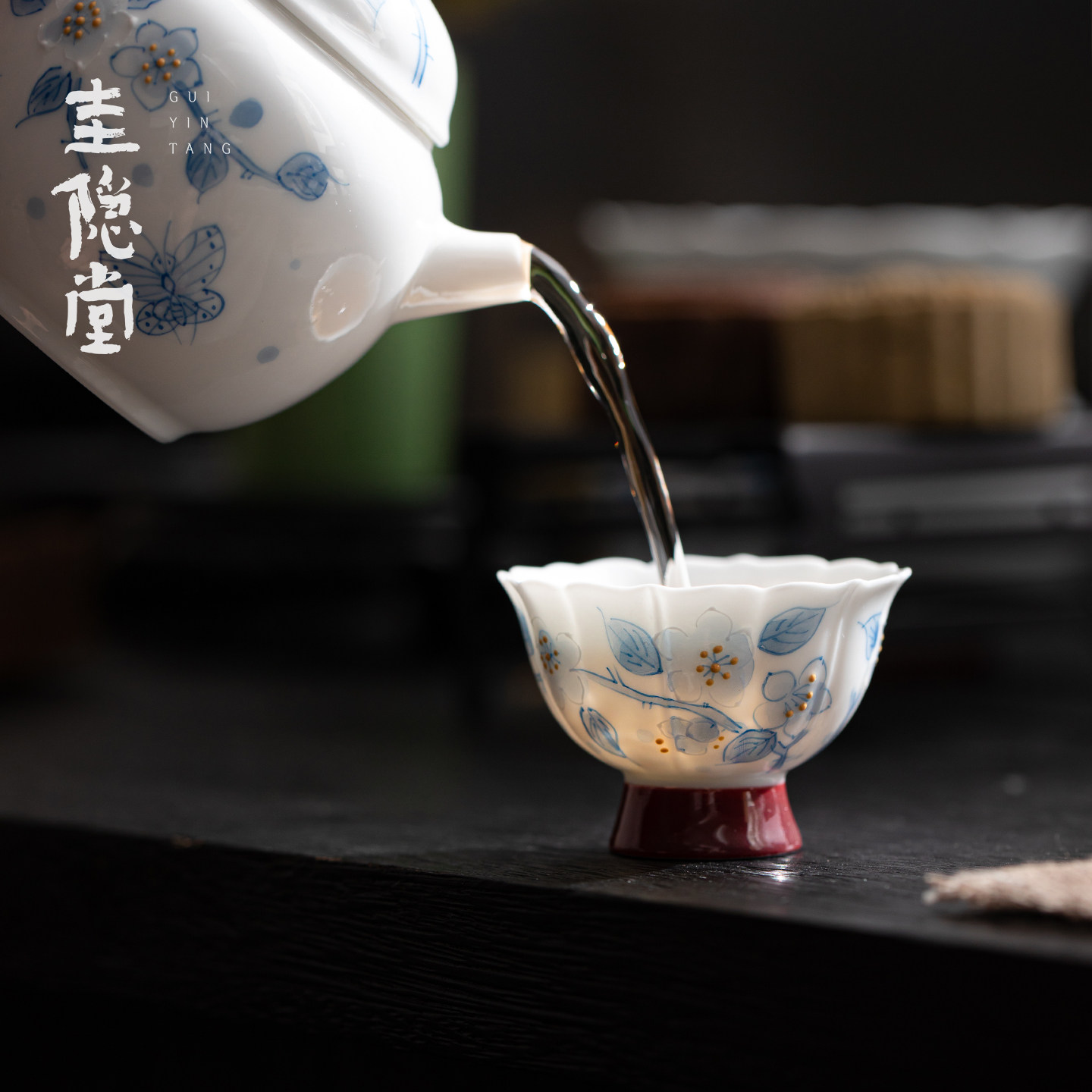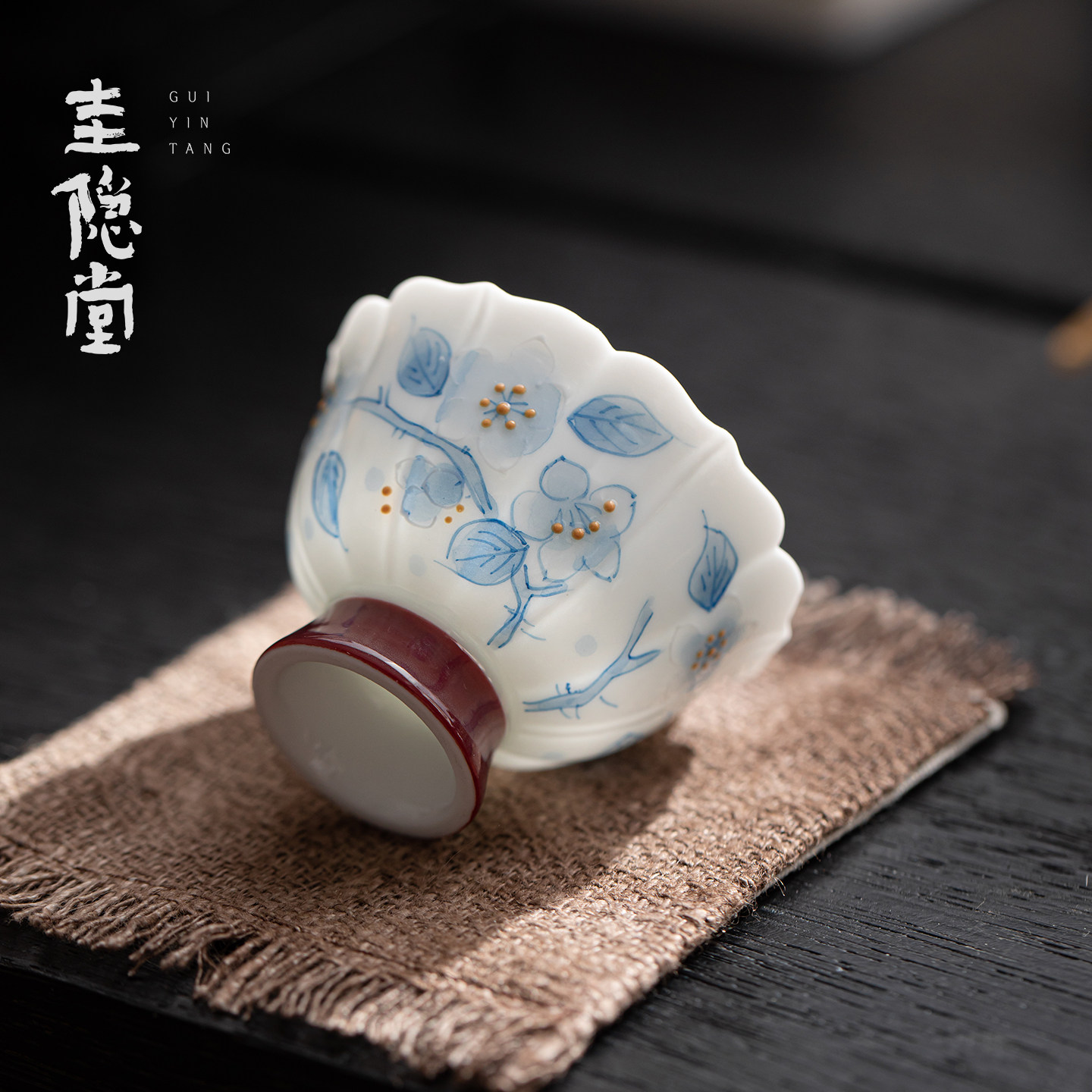 📚 圭隐堂有田烧手绘堆雕陶瓷茶杯主人杯高颜值女士专用品茗杯喝茶杯