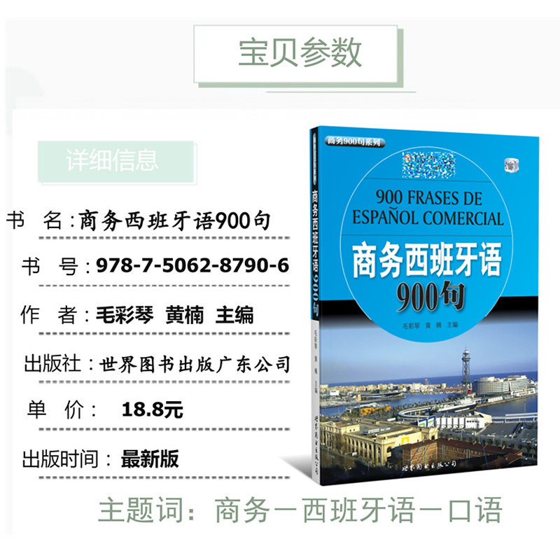📚 商务西班牙语900句(附音频)职业商务西班牙口语工作日常沟通用语商务洽谈情景对话西班牙商务礼仪风俗习惯外语书世界图书出版公司