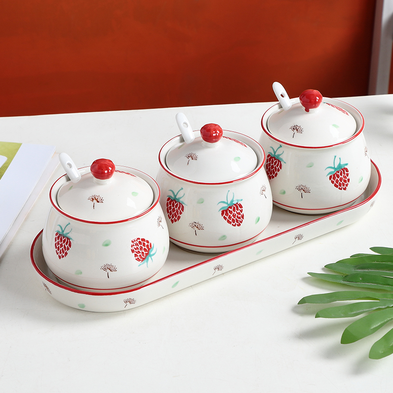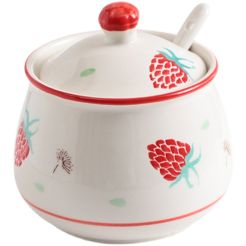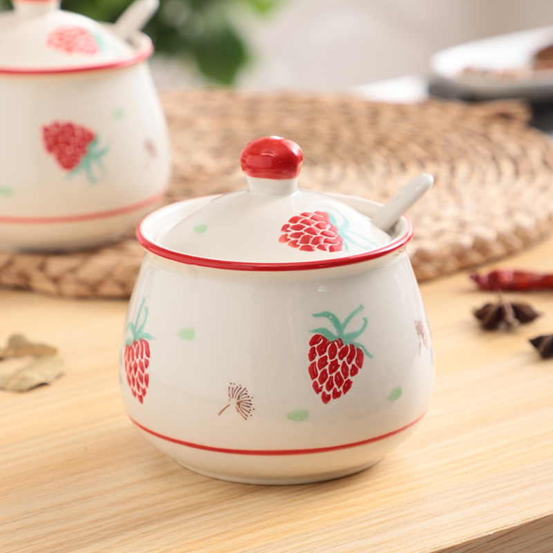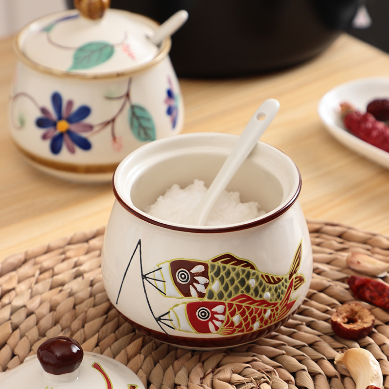 📚 中式陶瓷盐罐单个油泼辣子罐猪油罐厨房家用带盖调味罐调料盒手绘