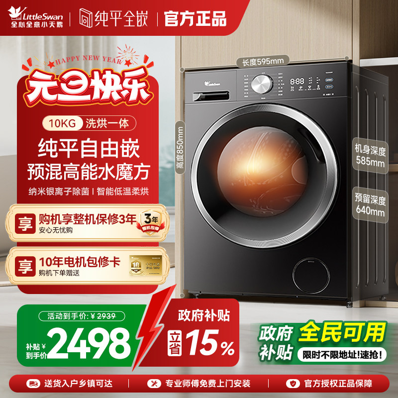 📚 【纯平全嵌】小天鹅水魔方10KG家用全自动洗衣机滚筒洗烘一体628T