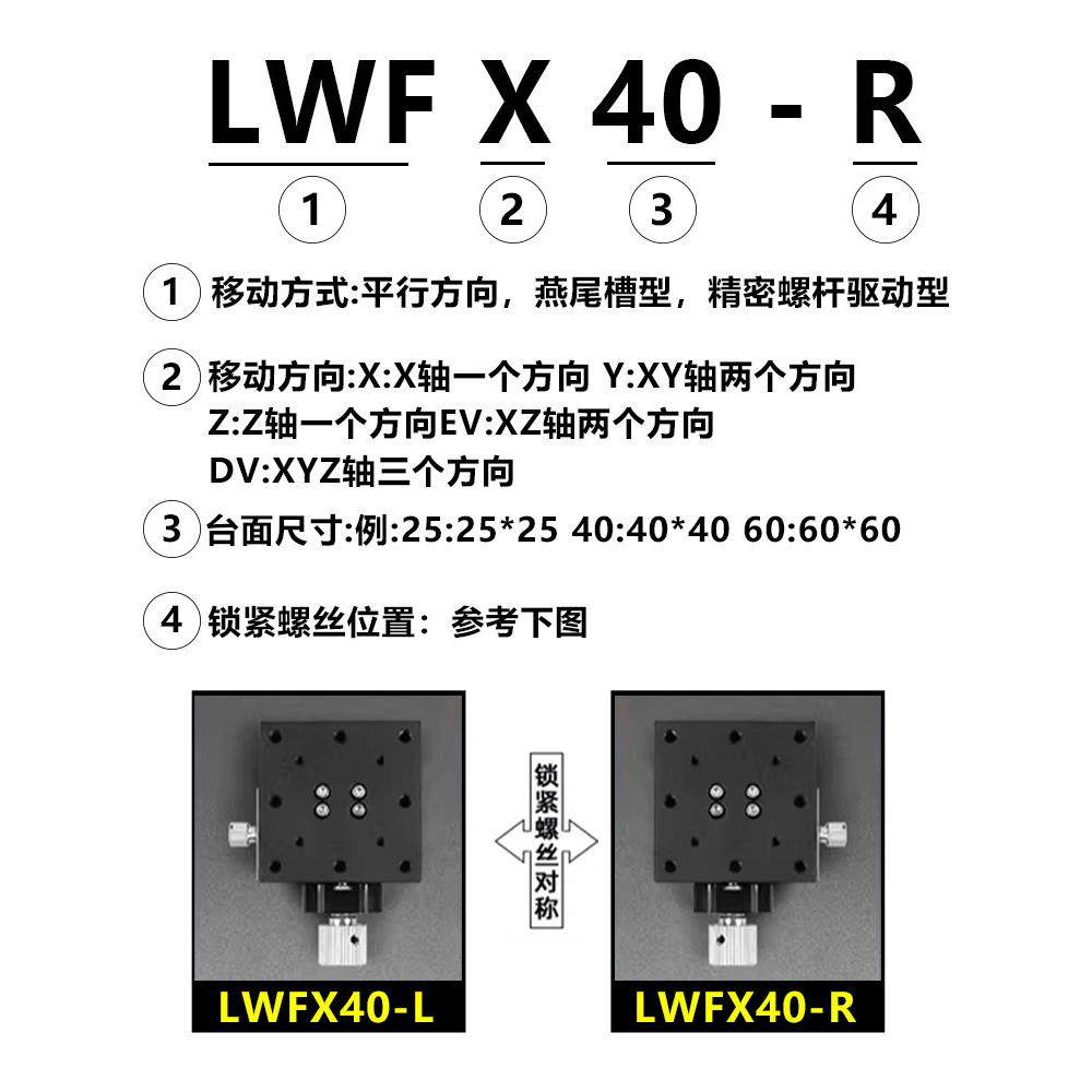 📚 X轴燕尾槽平台LWFX40/25/60精密微调螺杆驱动手动滑台XY轴位移台