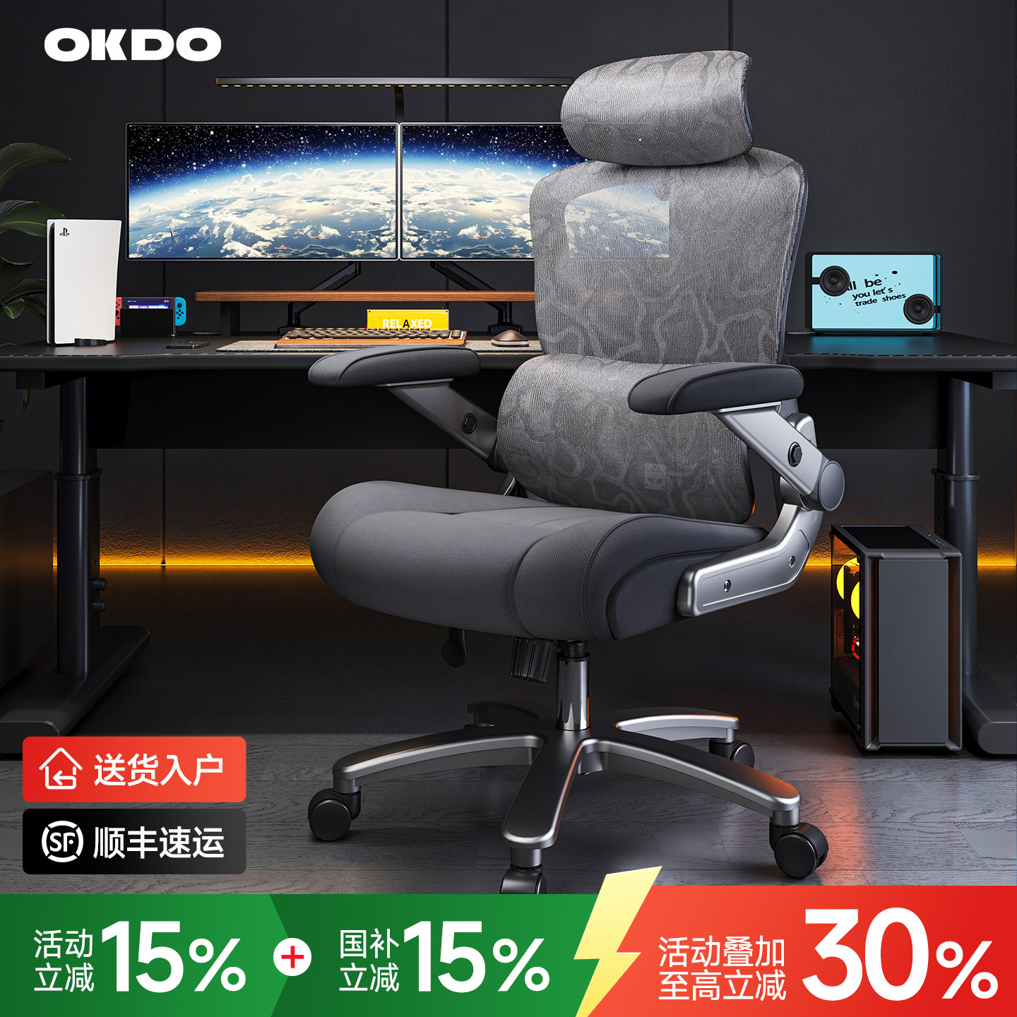 📚 OKDO人体工学椅子舒适久坐办公椅男生电竞椅大体重转椅家用电脑椅