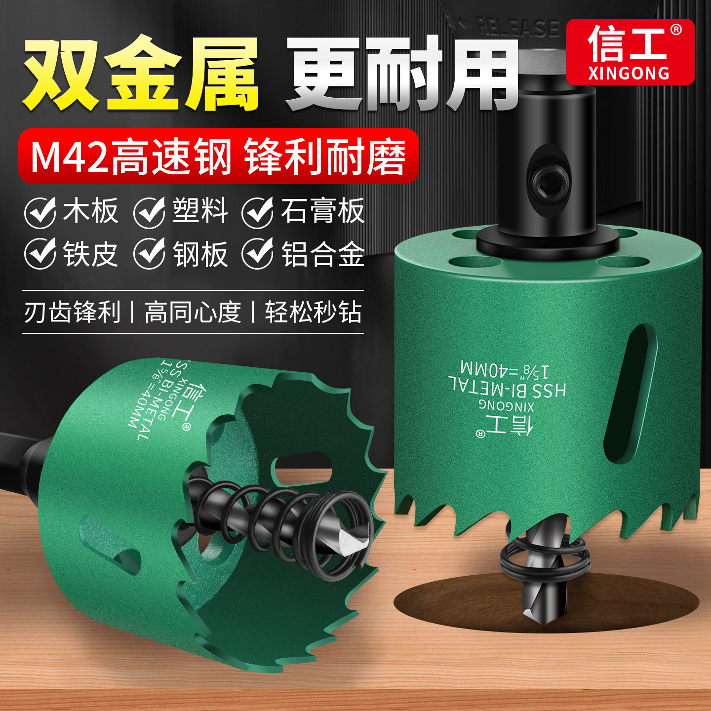 📚 双金属开孔器木工专用木板塑料石膏板PVC铁皮打孔钻头筒灯开孔器