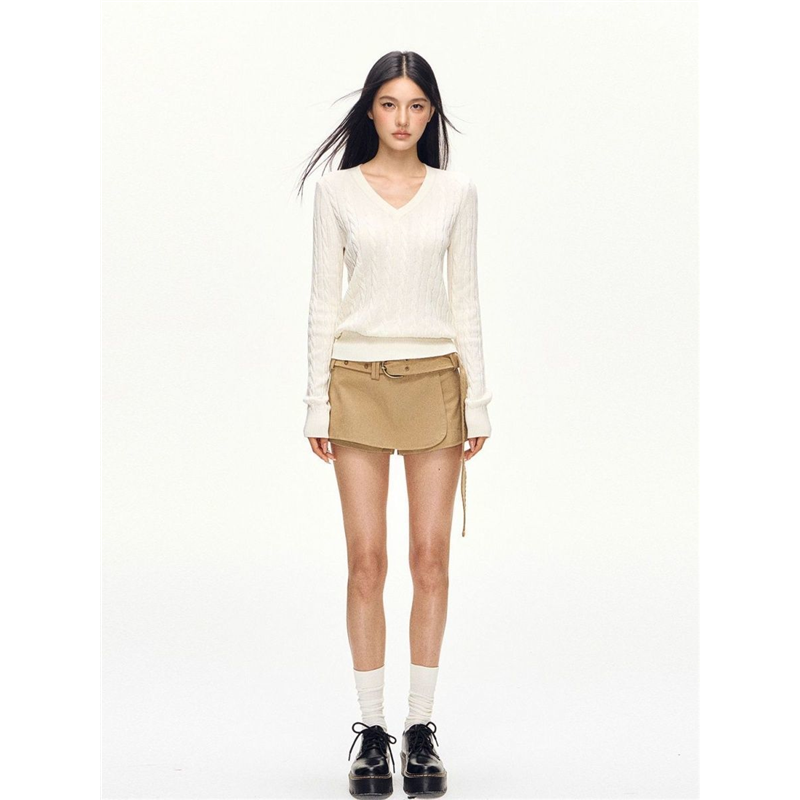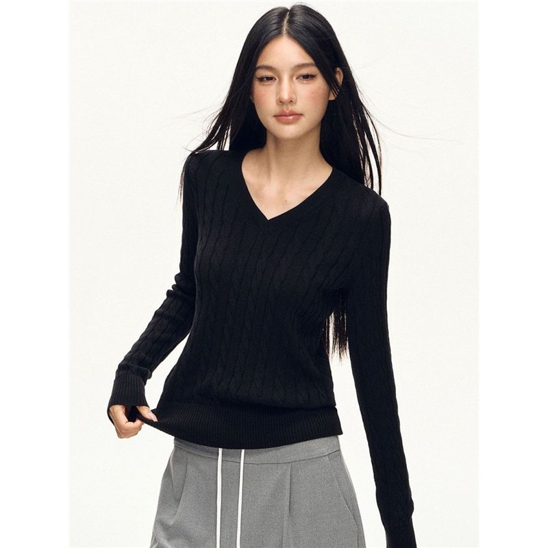 📚 101PASSION V领麻花毛衣女早秋韩系氛围感内搭打底修身针织衫上衣