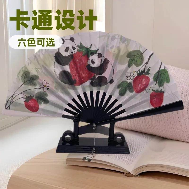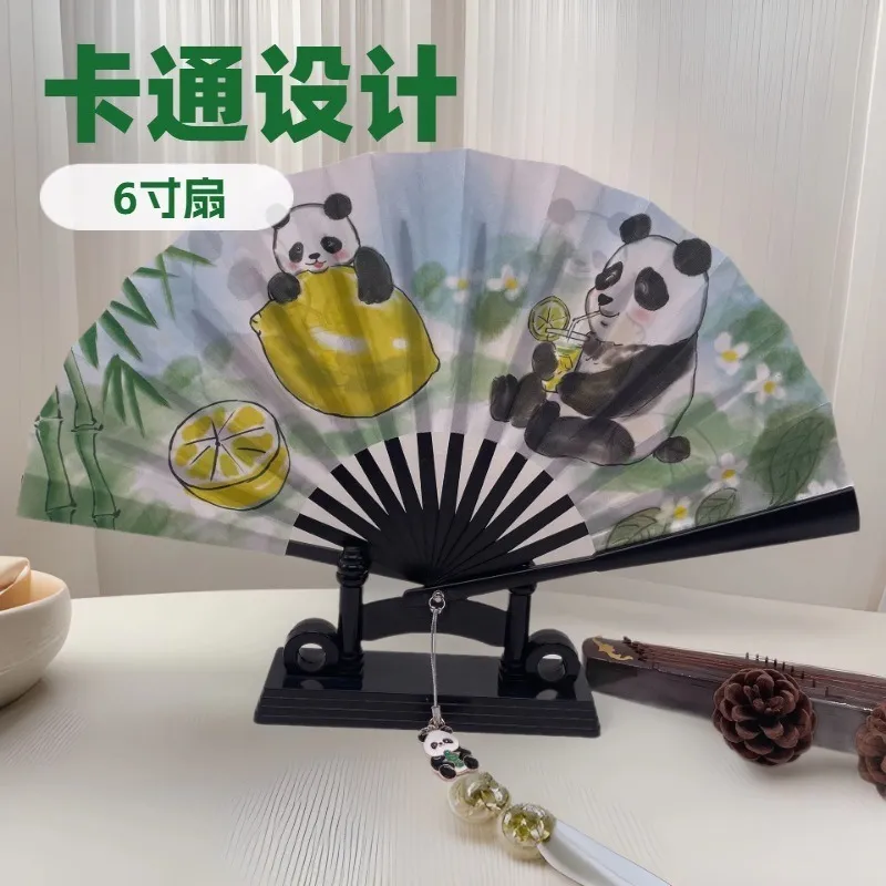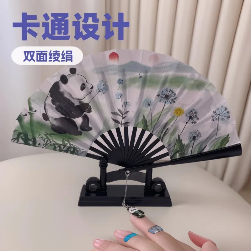 📚 新款卡通熊猫双面绢布折扇小扇子成都景区热卖扇摄影扇6寸19CM