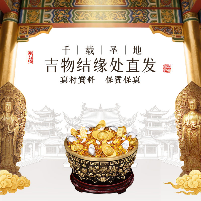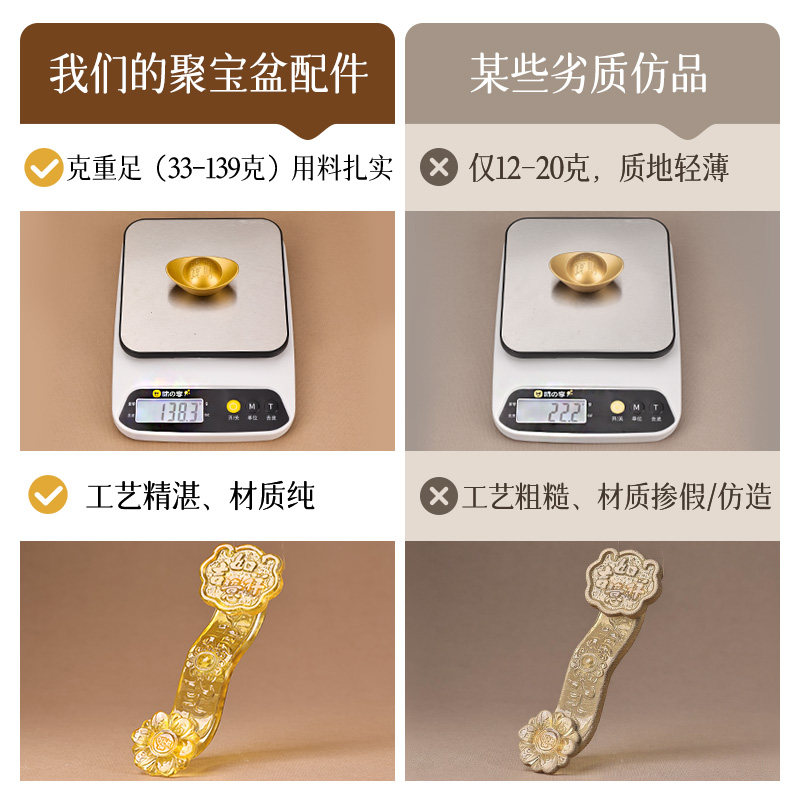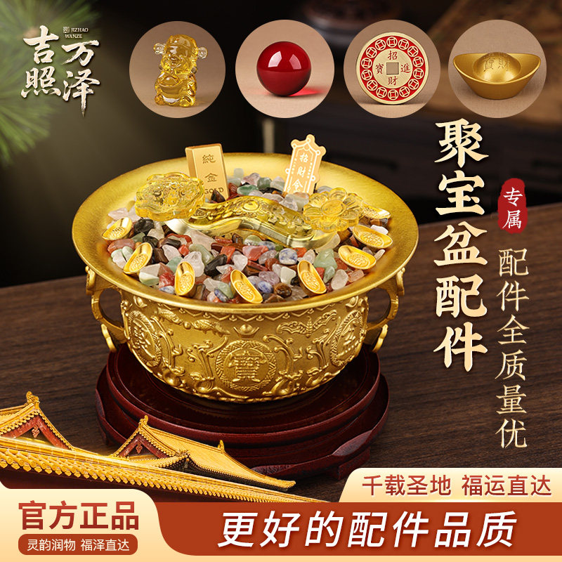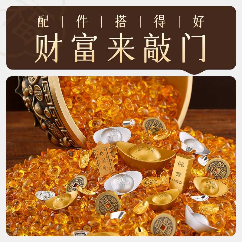 📚 聚宝盆里放的东西配件百福黄铜米缸黄水晶碎石金元宝鸿运珠装饰品
