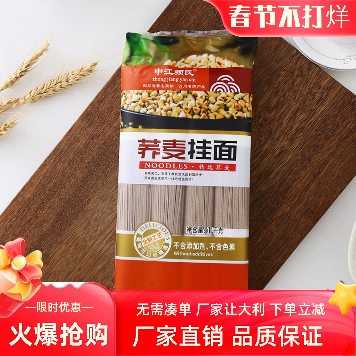📚 荞麦挂面中江颜氏面高筋粉爽滑劲道干面主食代餐袋装四川特产包邮