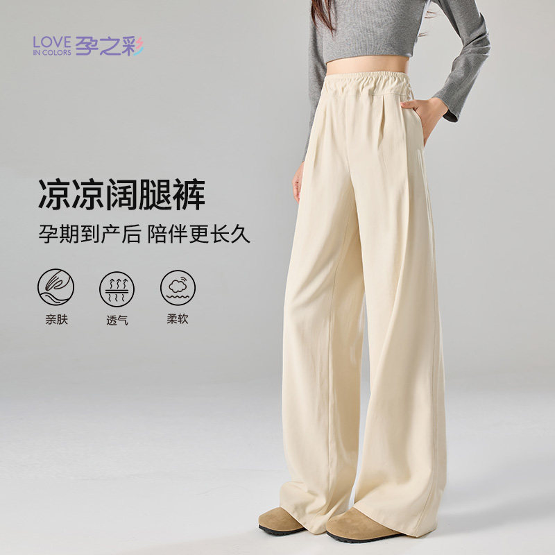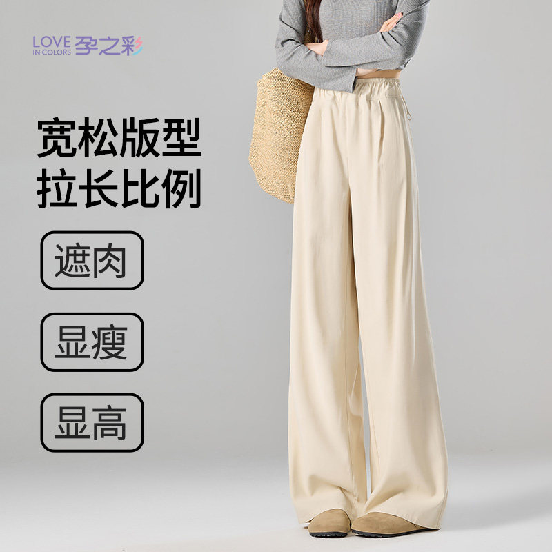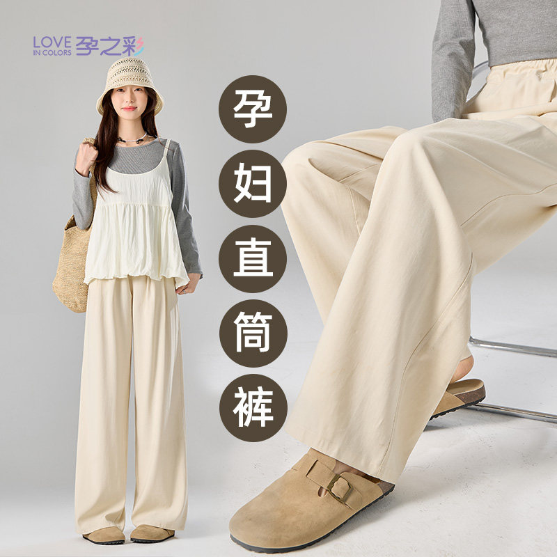 📚 孕之彩孕妇春夏新款外穿阔腿裤宽松可调节怀孕期不勒肚子直筒裤子