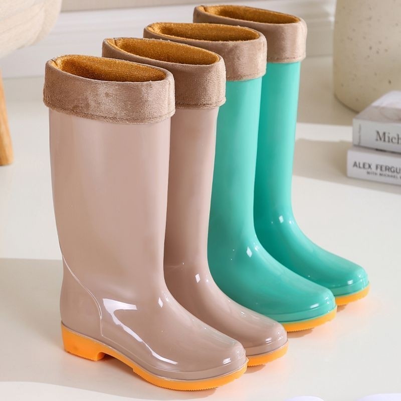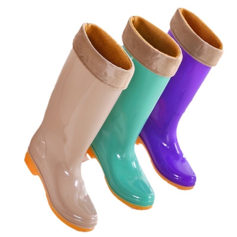 📚 雨鞋下地干活女款高筒雨靴女士水鞋防水防滑加绒保暖时尚水靴劳保