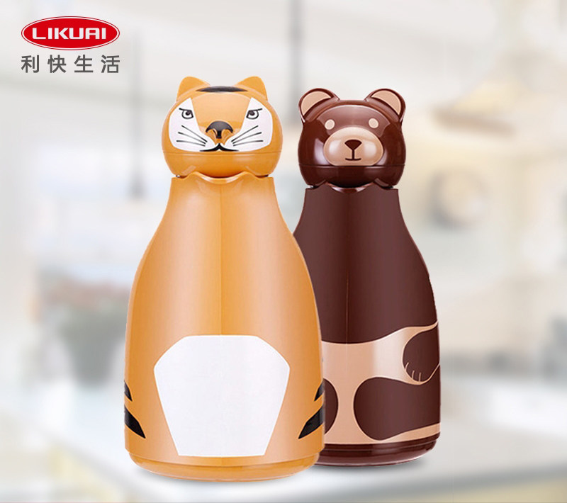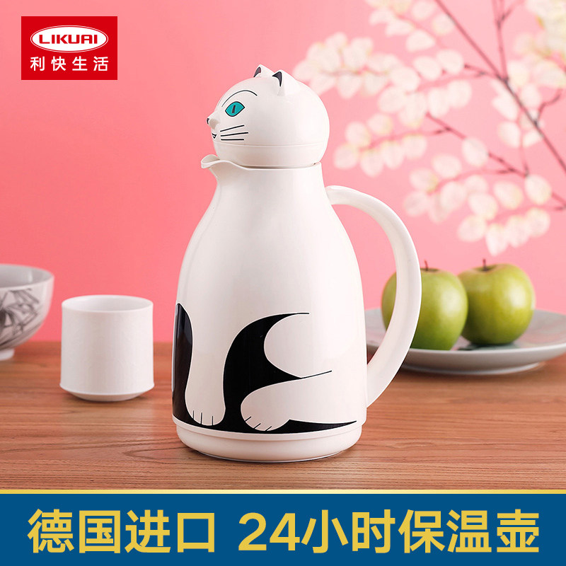 📚 利快旋转式保温壶HELIOS德国创意动物卡通造型玻璃内胆热水瓶1L