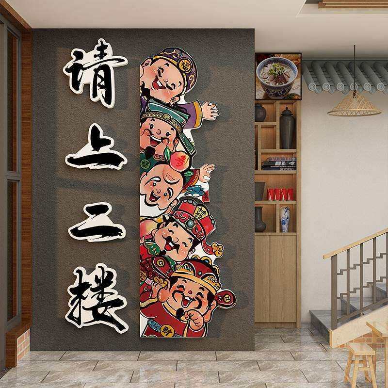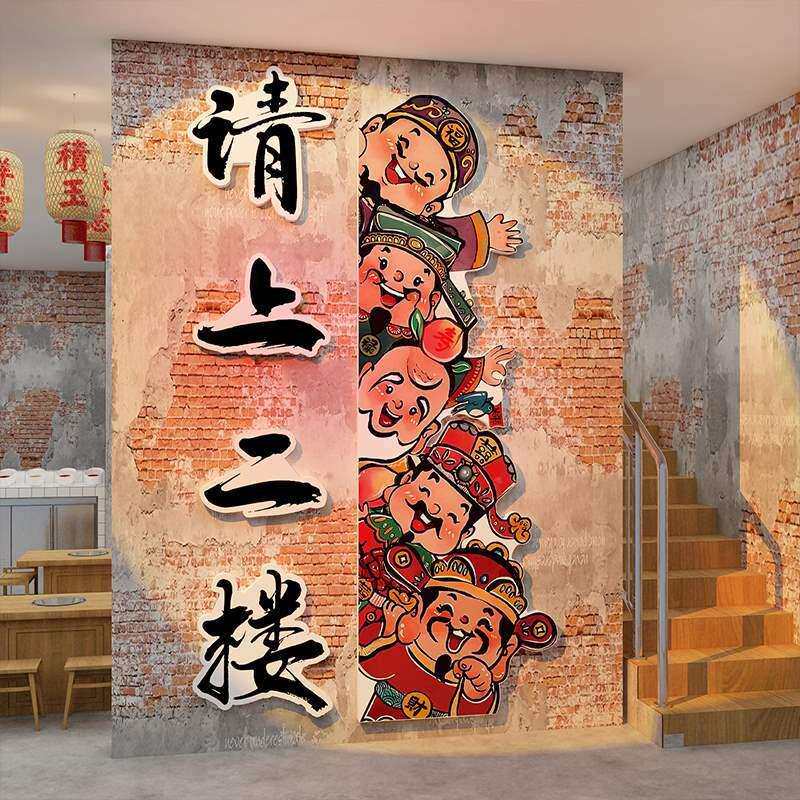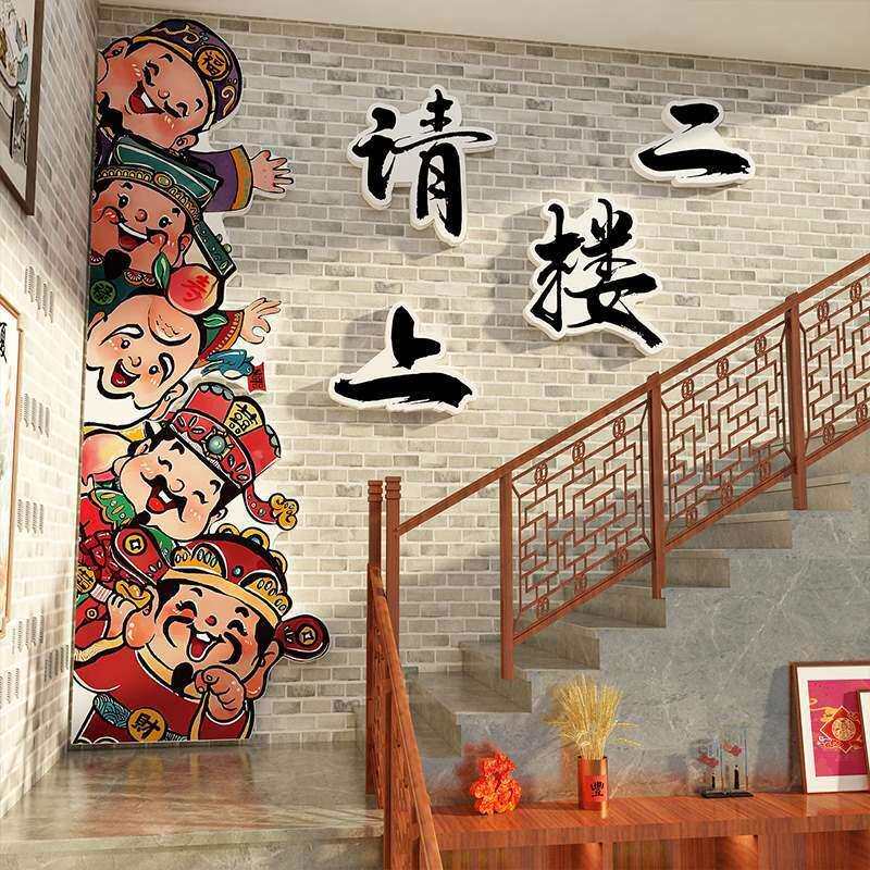 📚 网红打卡请上二楼梯指示引牌扶手台阶改造墙面贴装饰画台球厅棋室