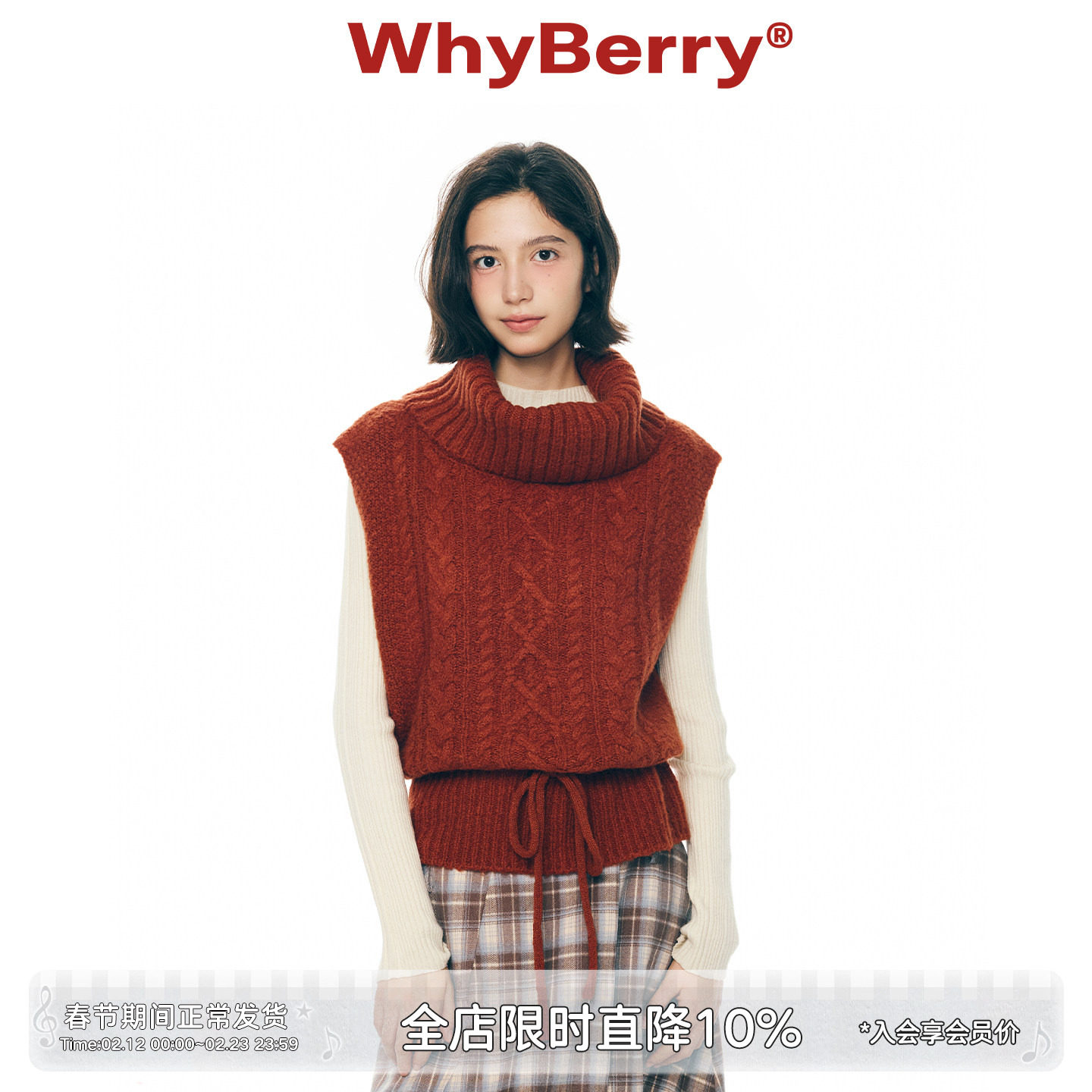 📚 WhyBerry 25AW“ 冬雪恋屿”复古高领针织背心抽绳绑带套头毛衣女