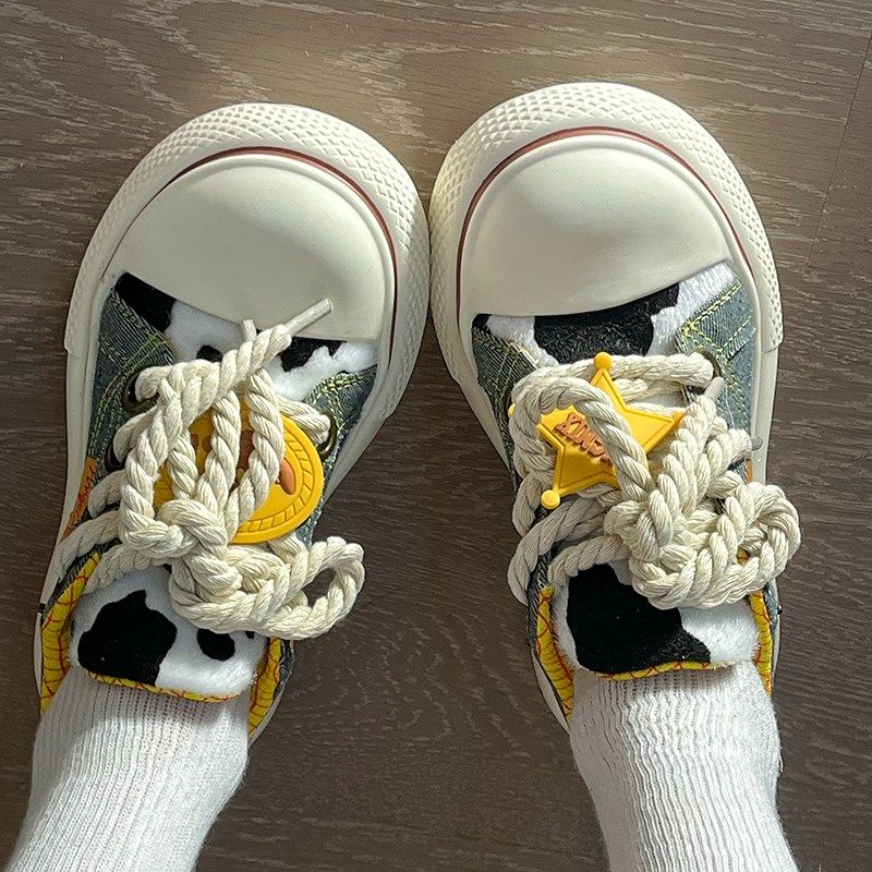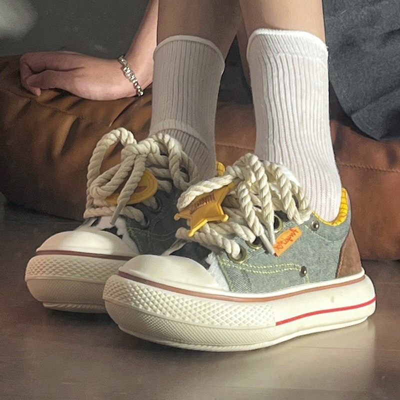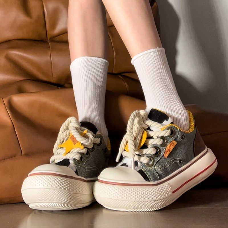 📚 胡迪牛仔帆布鞋男女鞋秋季休闲厚底板鞋增高O丑萌大头鞋子情侣鞋