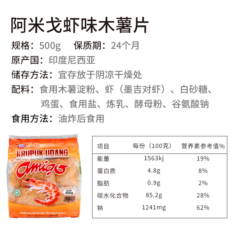 📚 印尼进口阿米戈大虾片500g莱冈油炸虾饼亚米高商用虾味原味木薯片