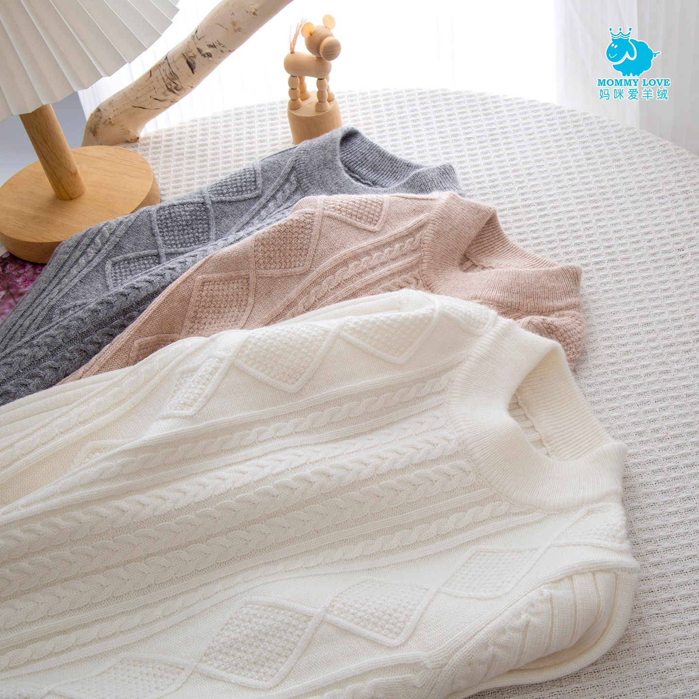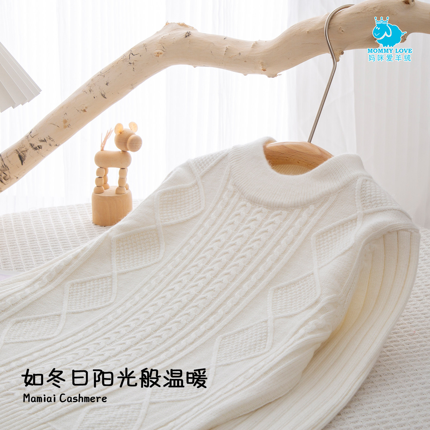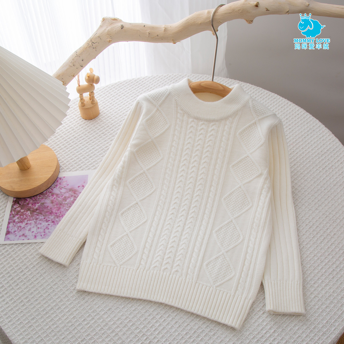 📚 儿童羊绒衫白色毛衣女童圆领大童宝宝针织衫打底衫高领男童羊毛衫
