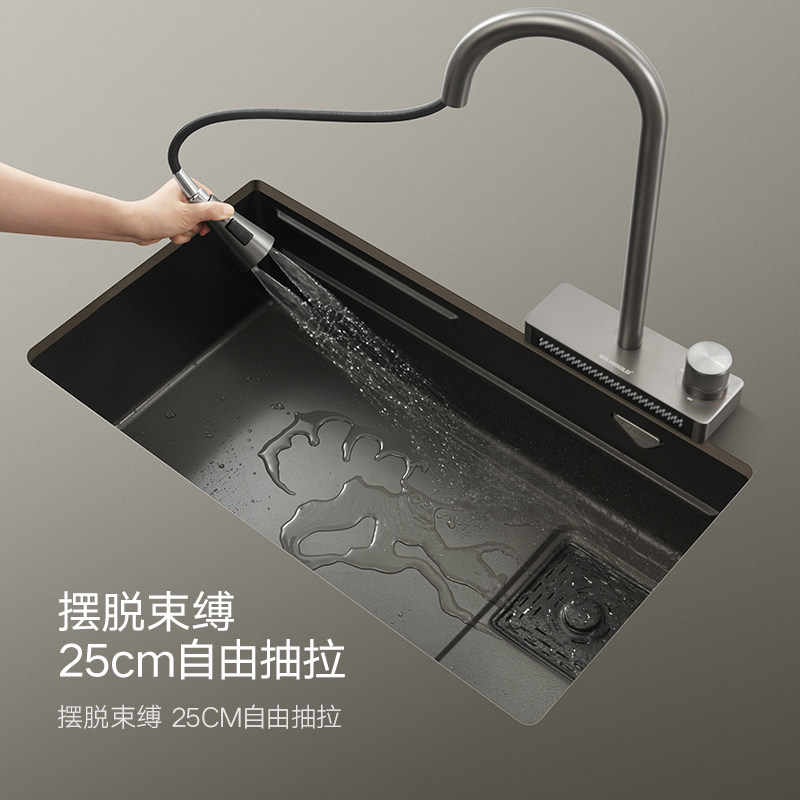 📚 悍高厨房水龙头304不锈钢旋转抽拉雨幕瀑布龙头多功能冷热水龙头