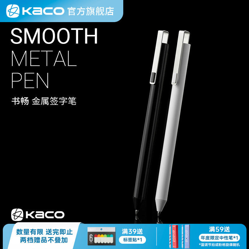 📚 KACO SMOOTH书畅金属按动式中性笔高档商务0.5黑色签字笔单支散装子弹头 时尚简约设计白领办公书写文具笔夹