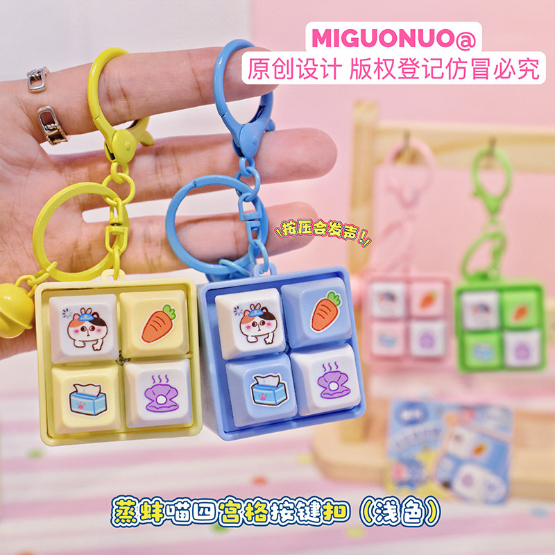 📚 原创蒸蚌喵四宫格按键钥匙扣按压发声解压玩具可爱书包挂件小礼物