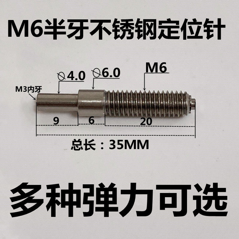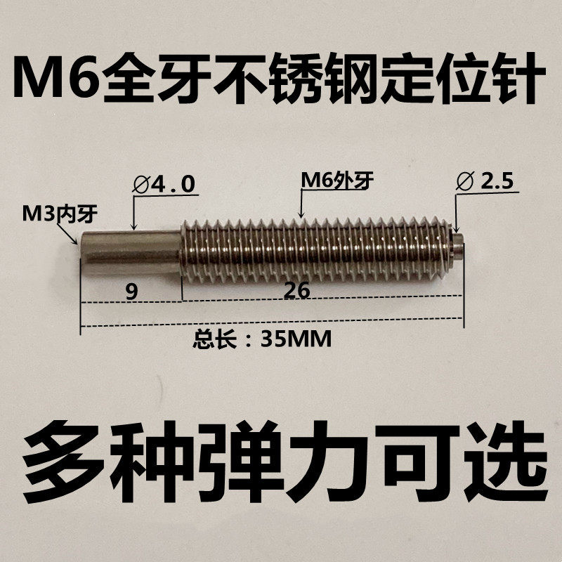 📚 全不锈钢M6全牙定位针总长35MM光板定位针内螺纹M3弹簧顶针