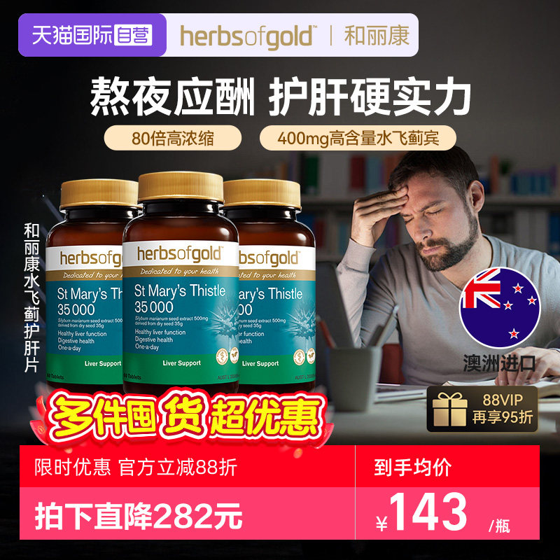 📚 【自营】和丽康herbsofgold护肝片水飞蓟熬夜肚子奶蓟草60粒*3