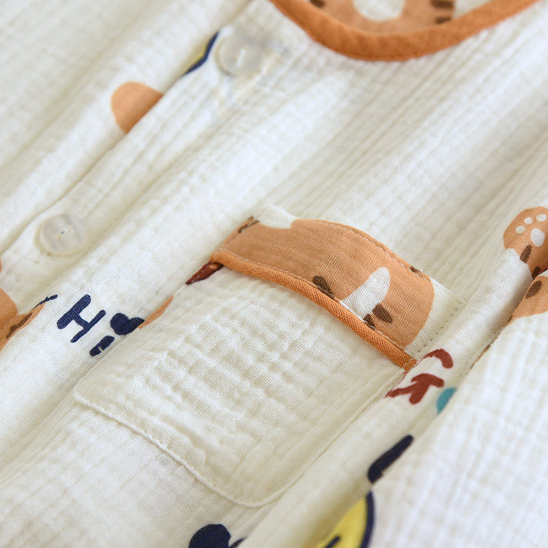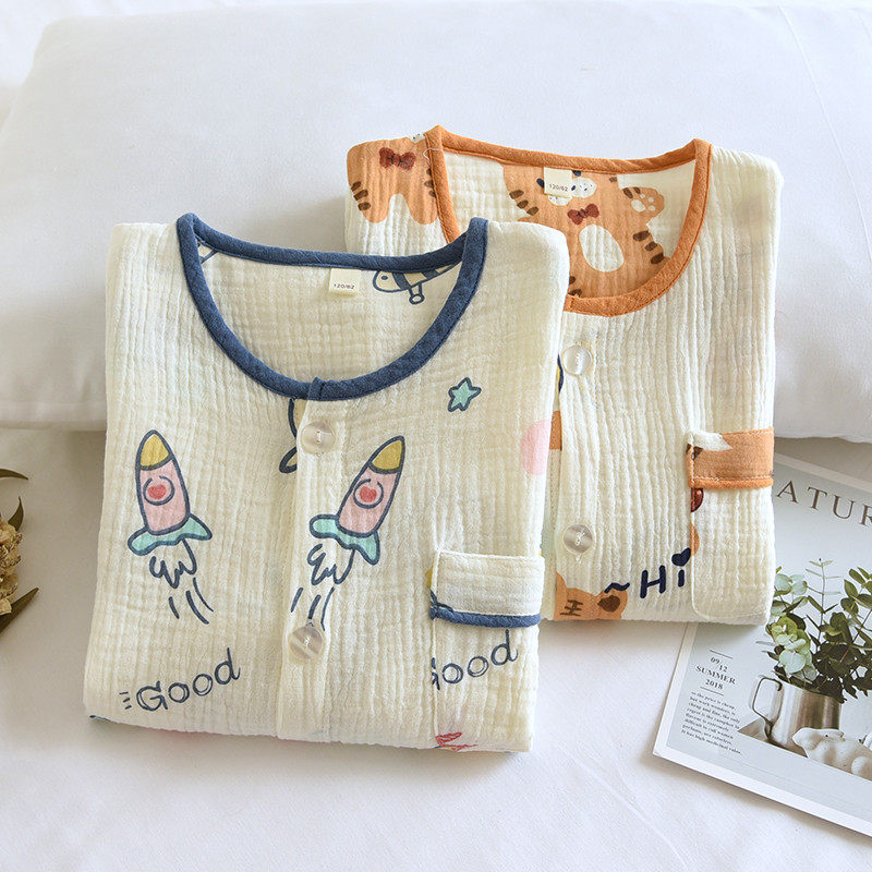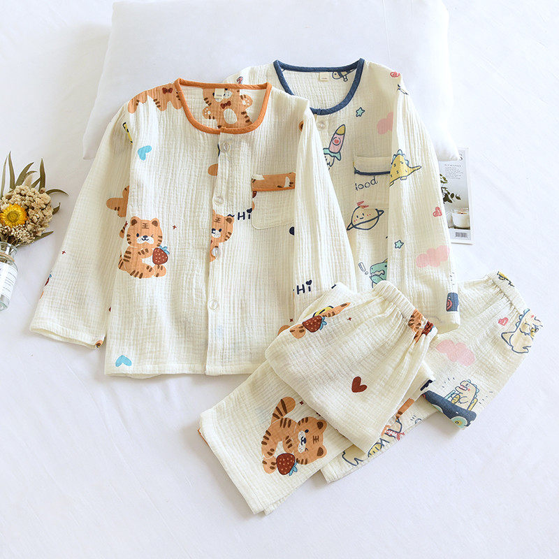 📚 儿童春秋夏薄纯棉纱布泡泡棉纱全棉男童睡衣圆领防蚊服a类家居服