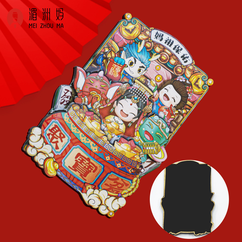 📚 湄洲妈妈祖冰箱贴聚宝盆木质冰箱贴文化创意装饰