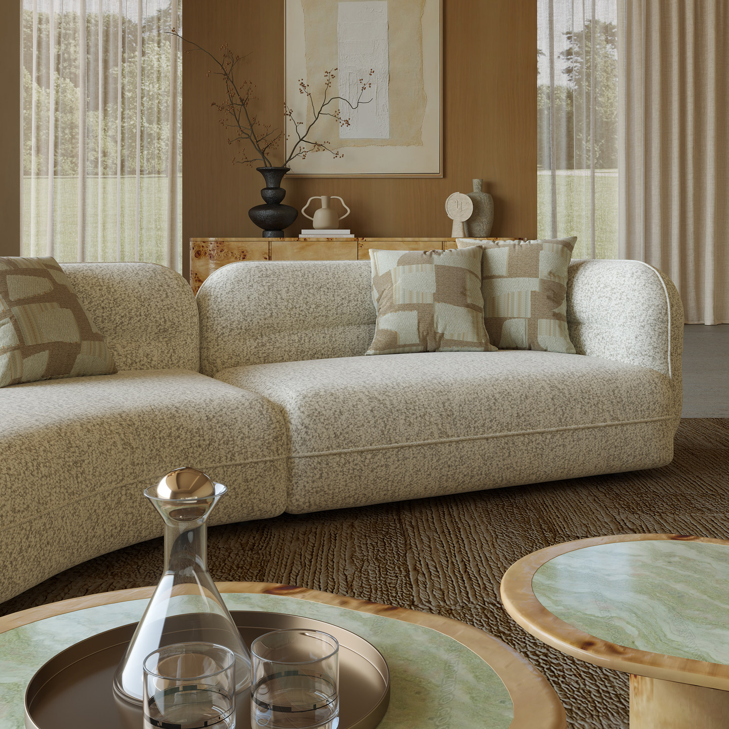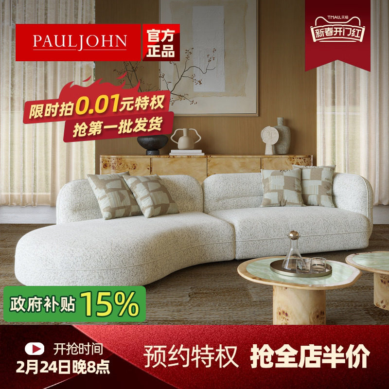 📚 PAULJOHN意式老钱风布艺沙发进口雪尼尔绒别墅大平层客厅弧形沙发
