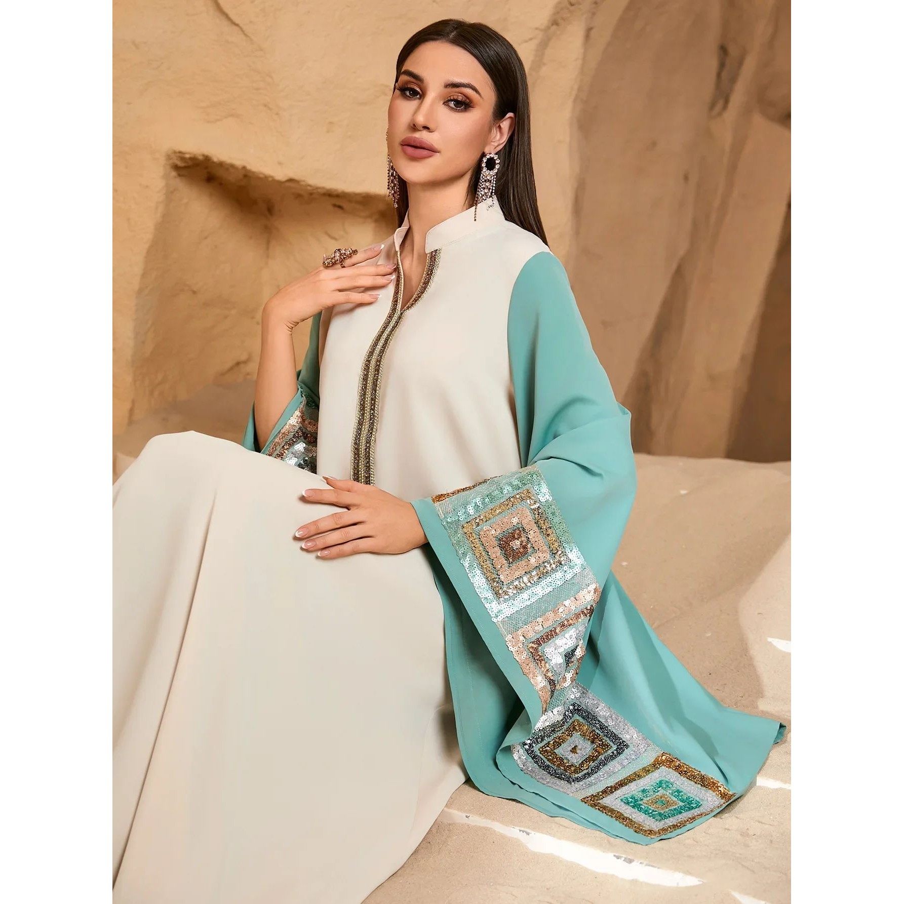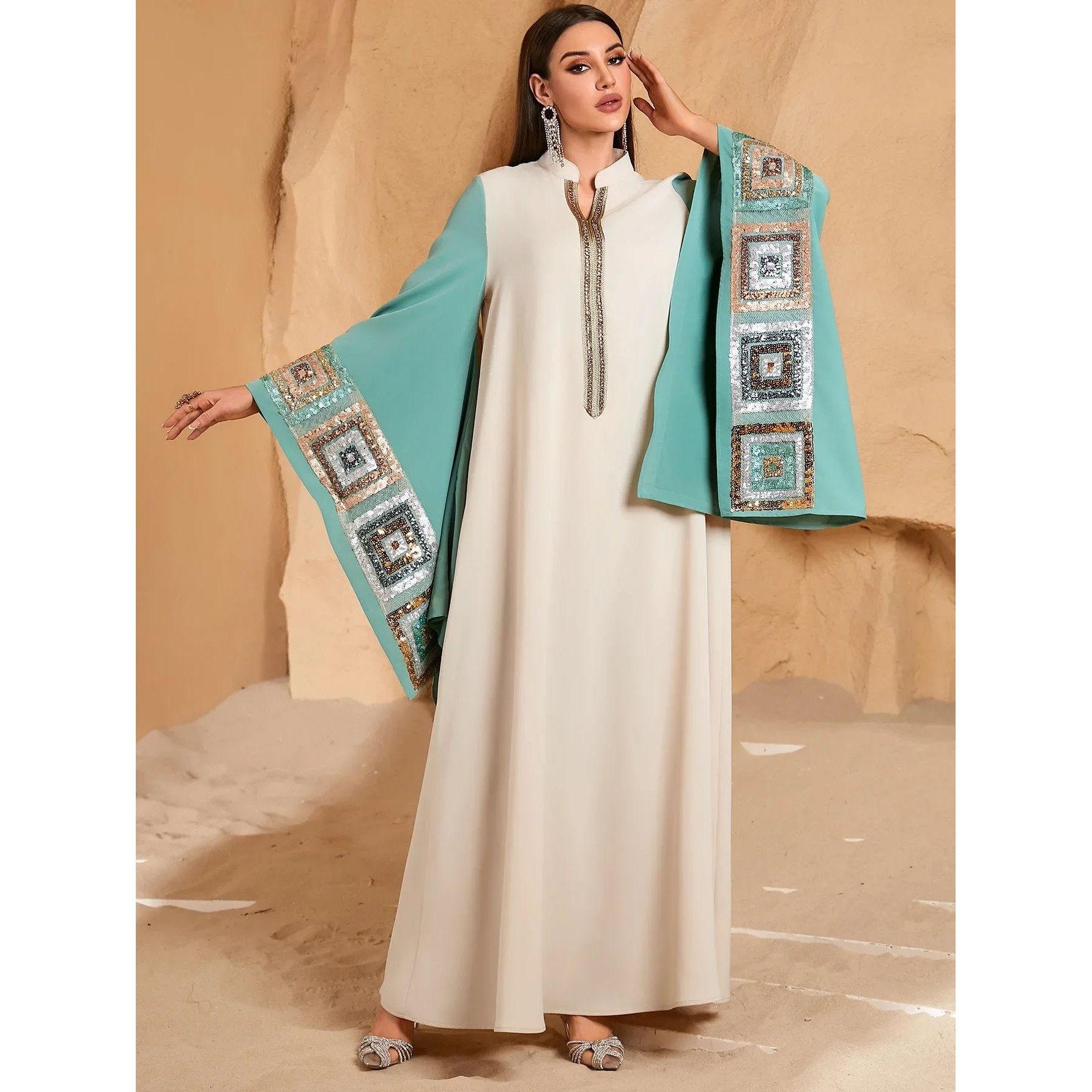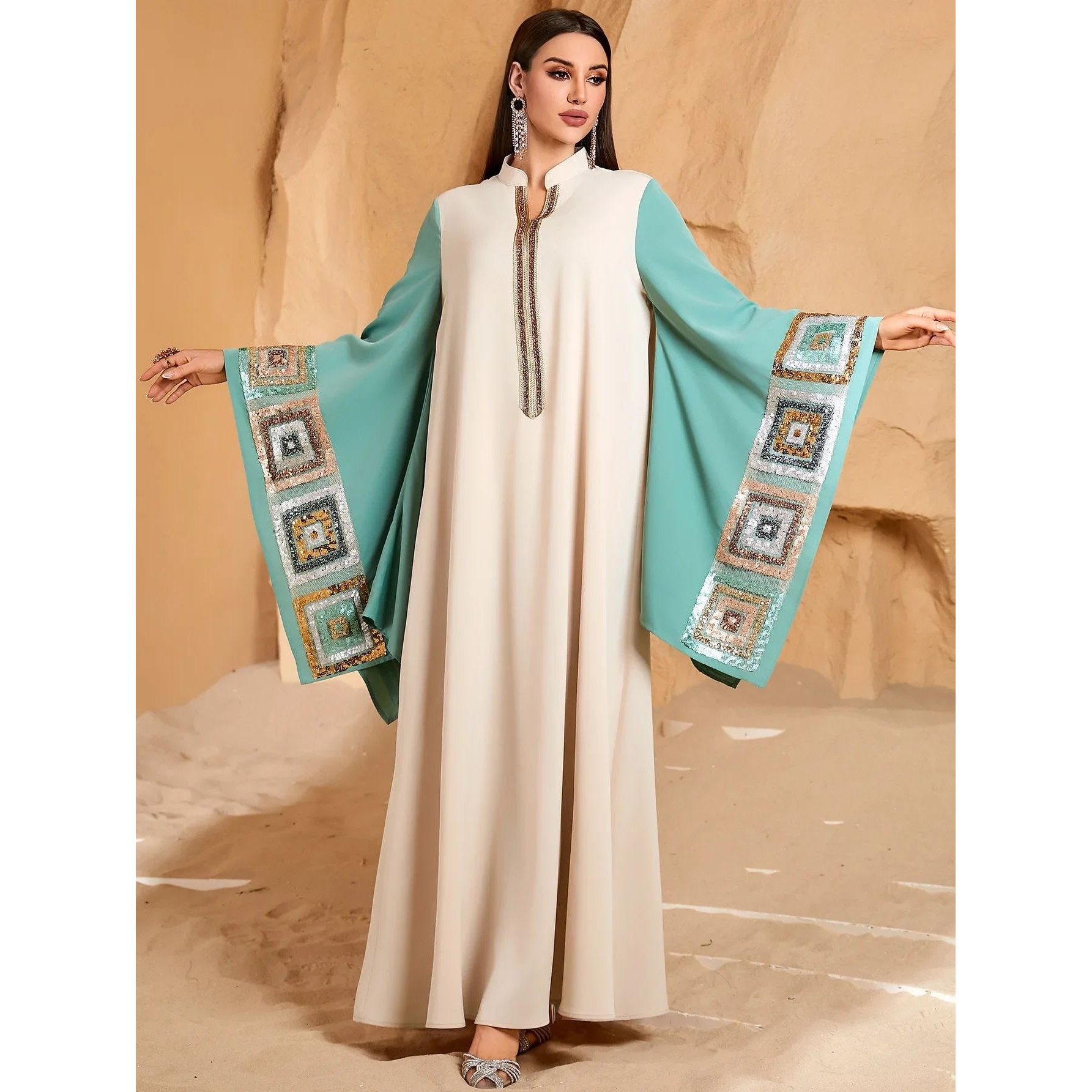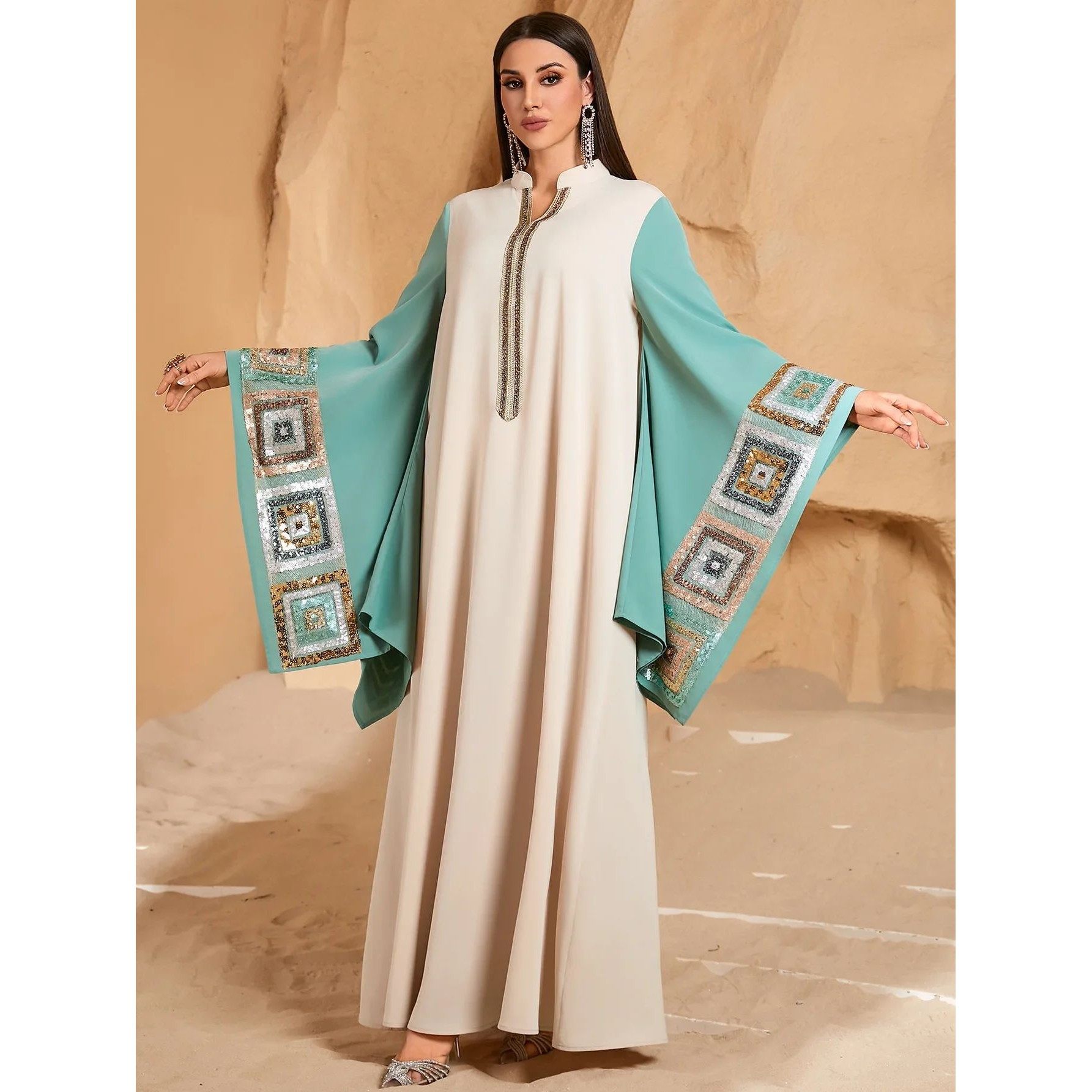 📚 Dress Women Bat Sleeve Sequins Embroidery Long Dresses Part
