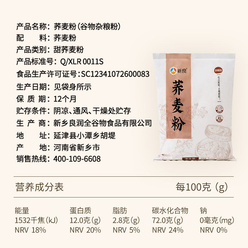 📚 新良荞麦粉1kg中筋高膳食纤维精细研磨延展性好老少皆宜细腻清香