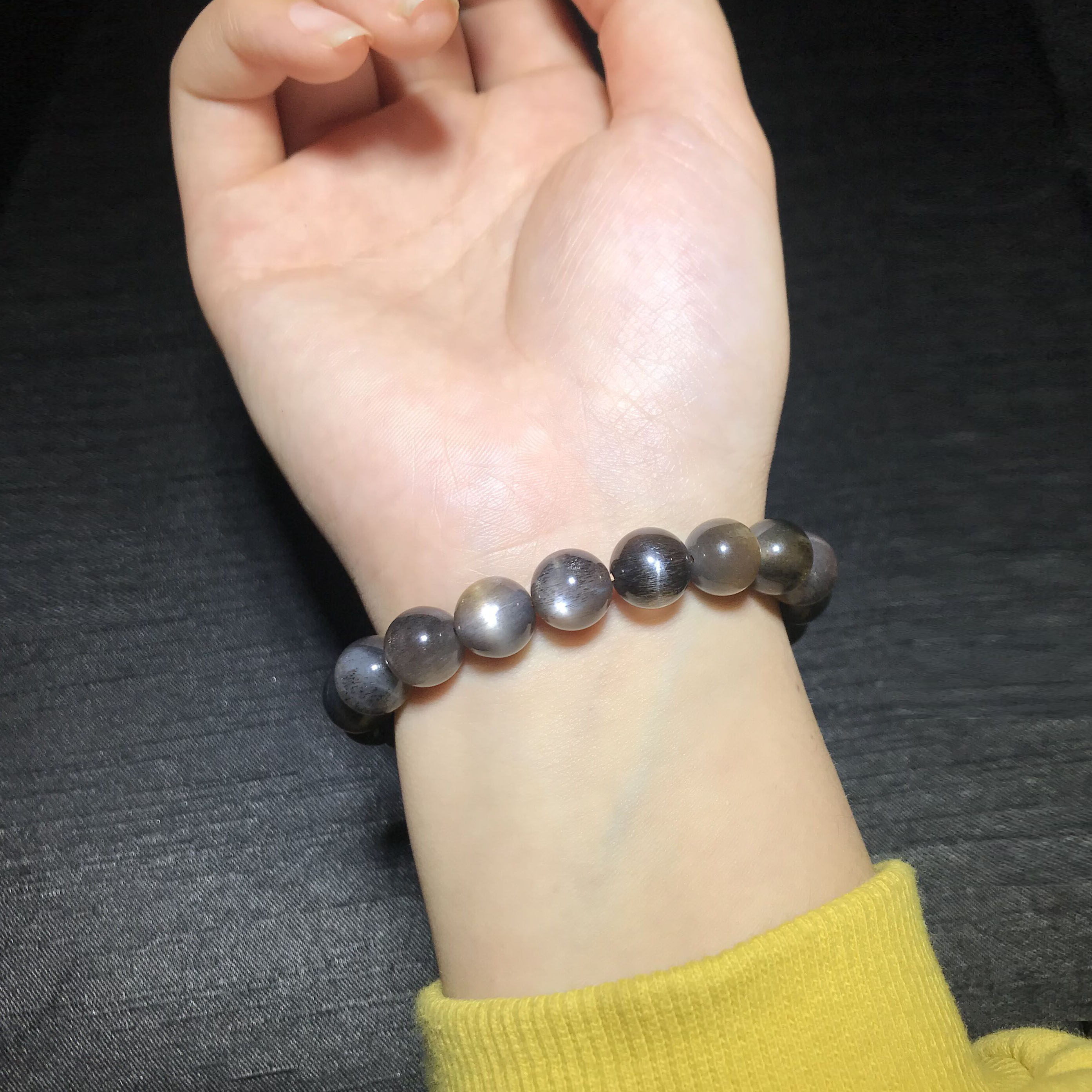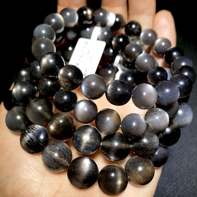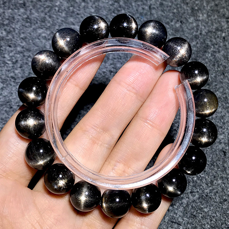 📚 一物一图天然黑太阳石手链男女日光金月光石黑骨干水晶猫眼石手串
