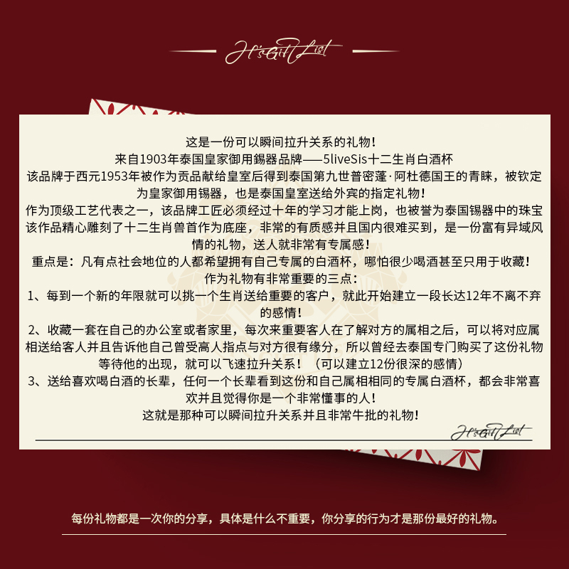 📚 H的礼物清单丨「皇家御用錫器」5ivesis十二生肖白酒杯高档酒器礼