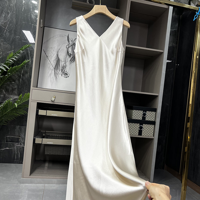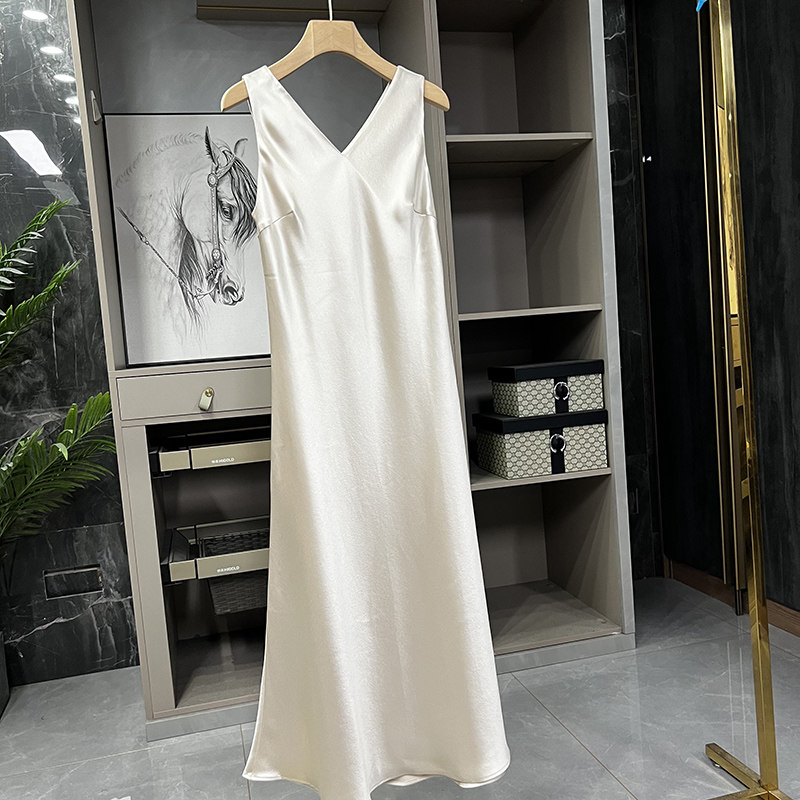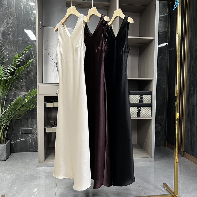 📚 清仓不予退换!贵气!斜裁V领缎面醋酸吊带连衣裙D2836~ZY