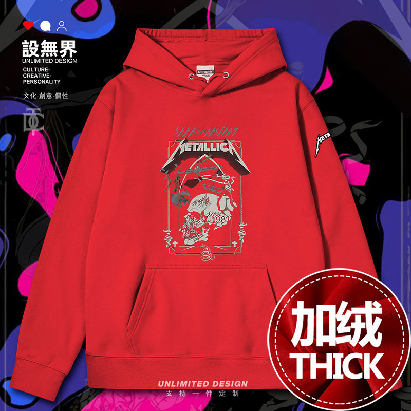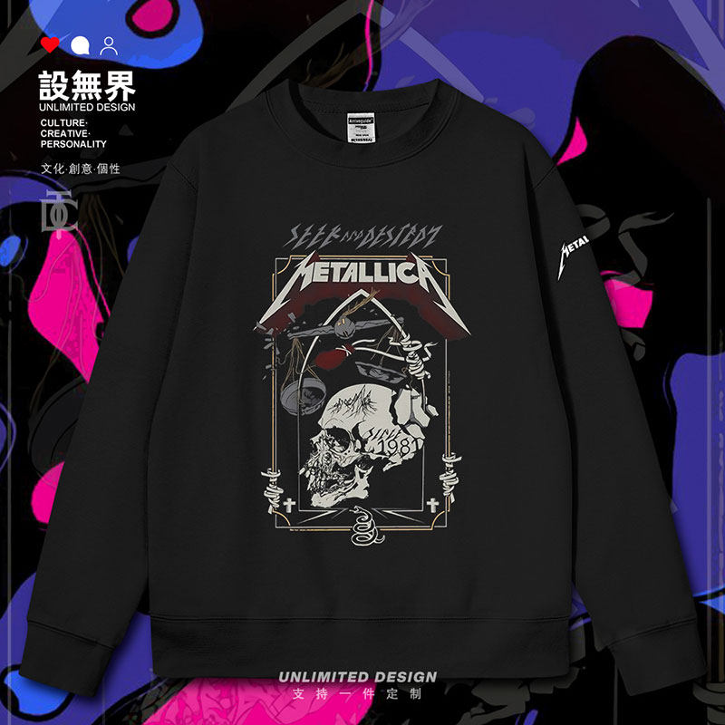 📚 设无界金属乐队Metallica金属之王骷髅海报连帽卫衣男女服装秋装