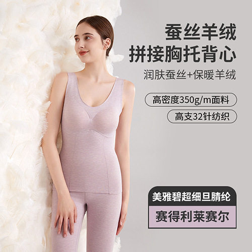 📚 秋冬保暖女士加绒内衣背心7A抑菌蚕丝羊绒女士背心带可拆胸垫背心