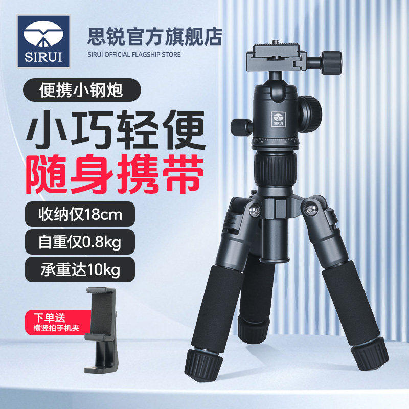 📚 SIRUI思锐AM-TT50三脚架单反相机桌面视频直播支架随身轻便横竖拍球形云台铝合金三角架专业承重10kg旅行拍照