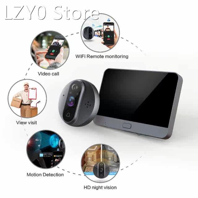 📚 Smart WiFi Video Doorbell Peephole Doorbell Viewer Home PIR