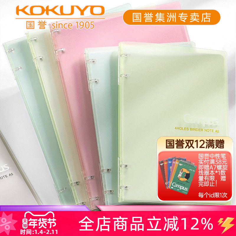 📚 日本kokuyo国誉Campus四孔A5轻薄便携可拆卸活页本B5不硌手女生高颜值清新活页夹学生笔记本360°翻折不硌手