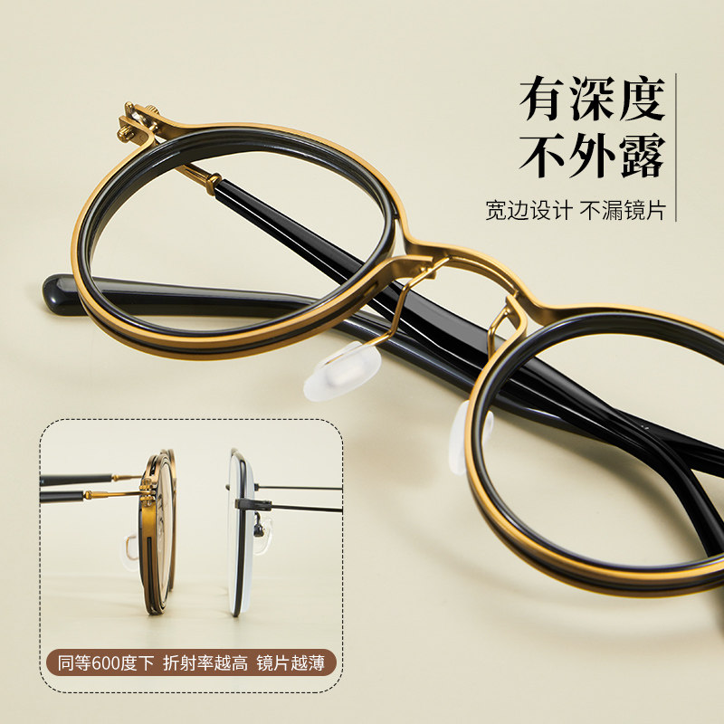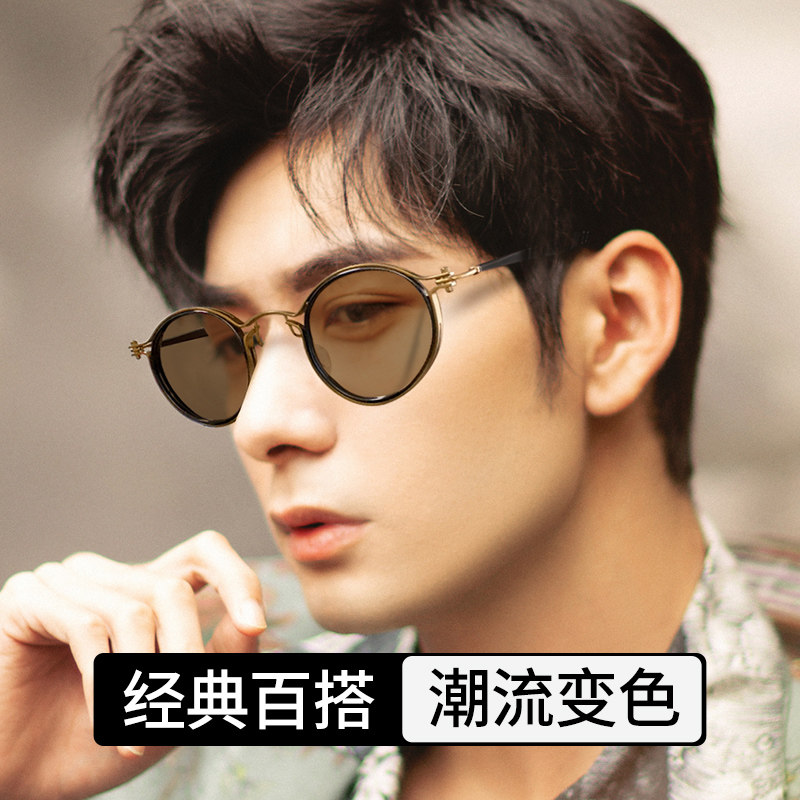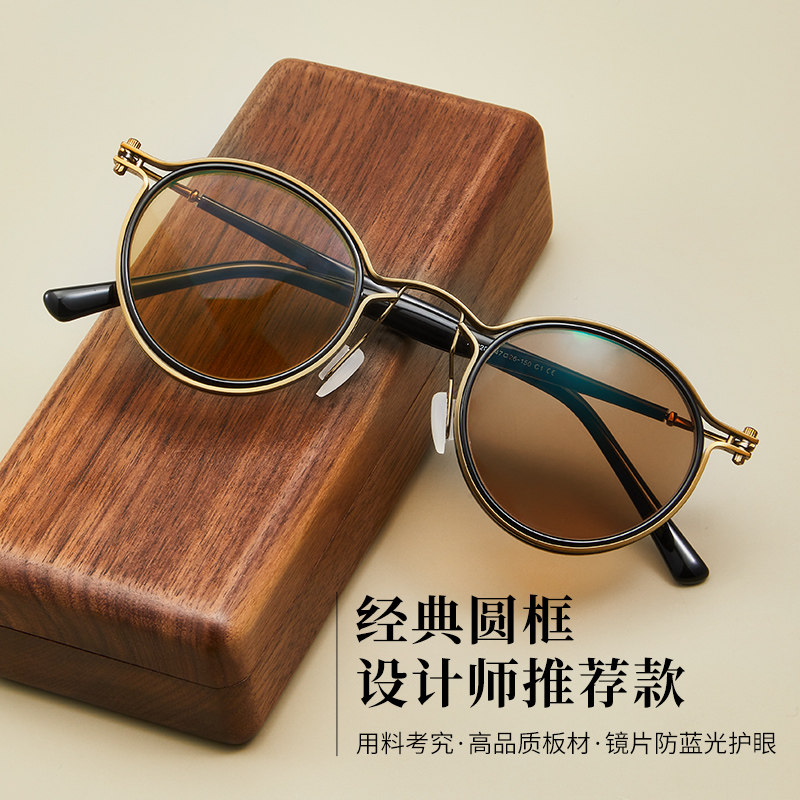 📚 感光变色近视眼镜男款可配度数防辐射抗蓝光复古圆框眼睛万年乌龟