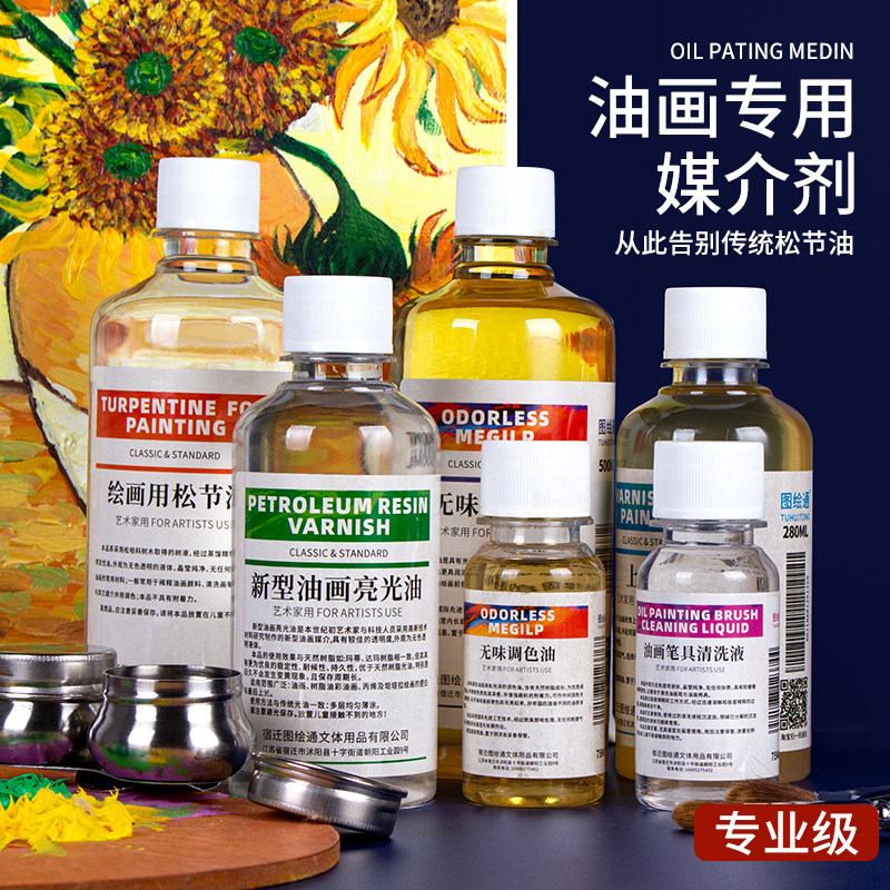 📚 油画媒介丙烯颜料稀释剂松节油油画颜料画笔清洗液丙烯稀释剂500ml调色油上光油洗笔液无色调色剂美术工具