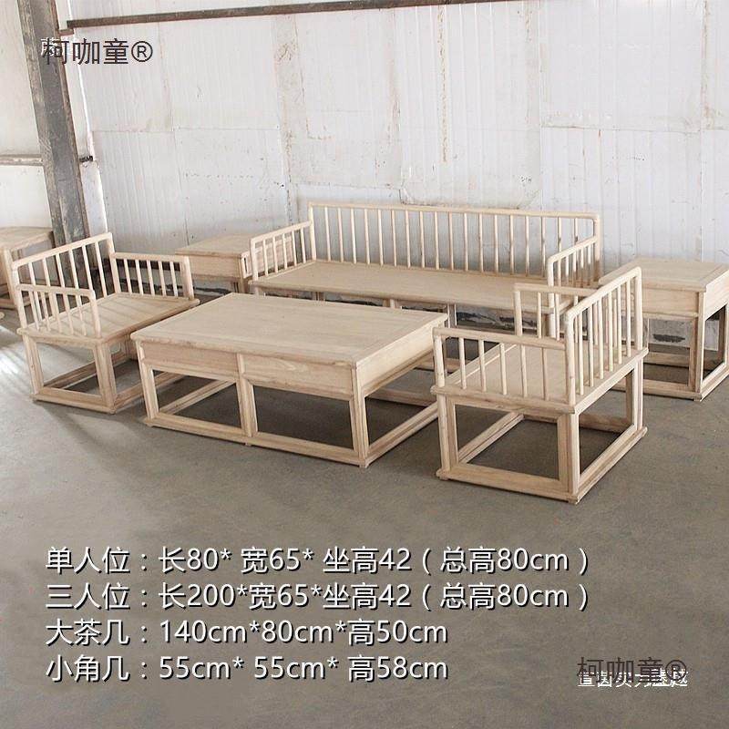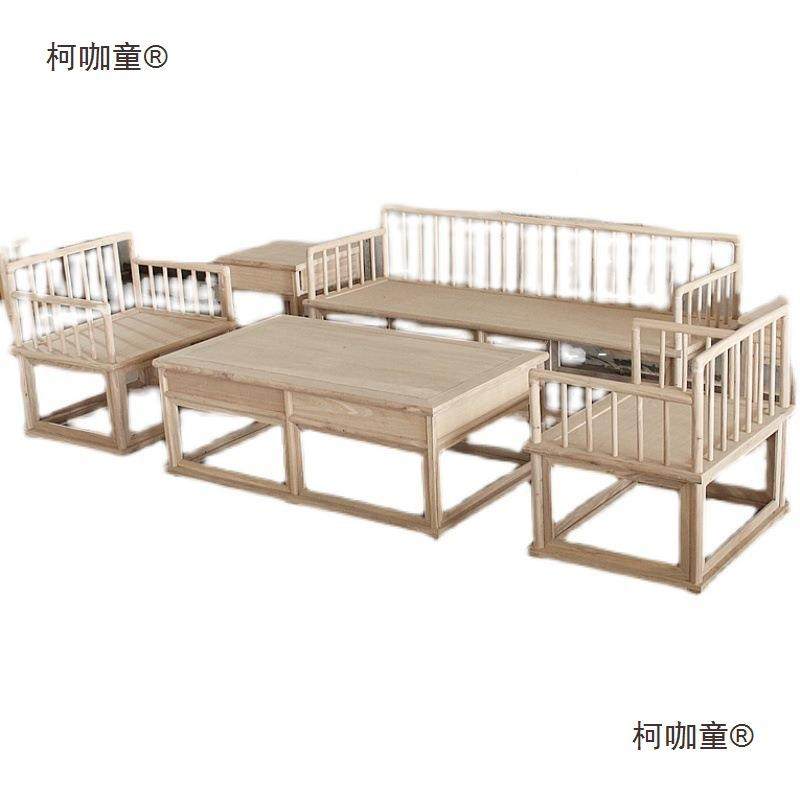 📚 北老榆木沙发组合白茬新式全实方木白原木罗MXD坯中汉床沙发白麦